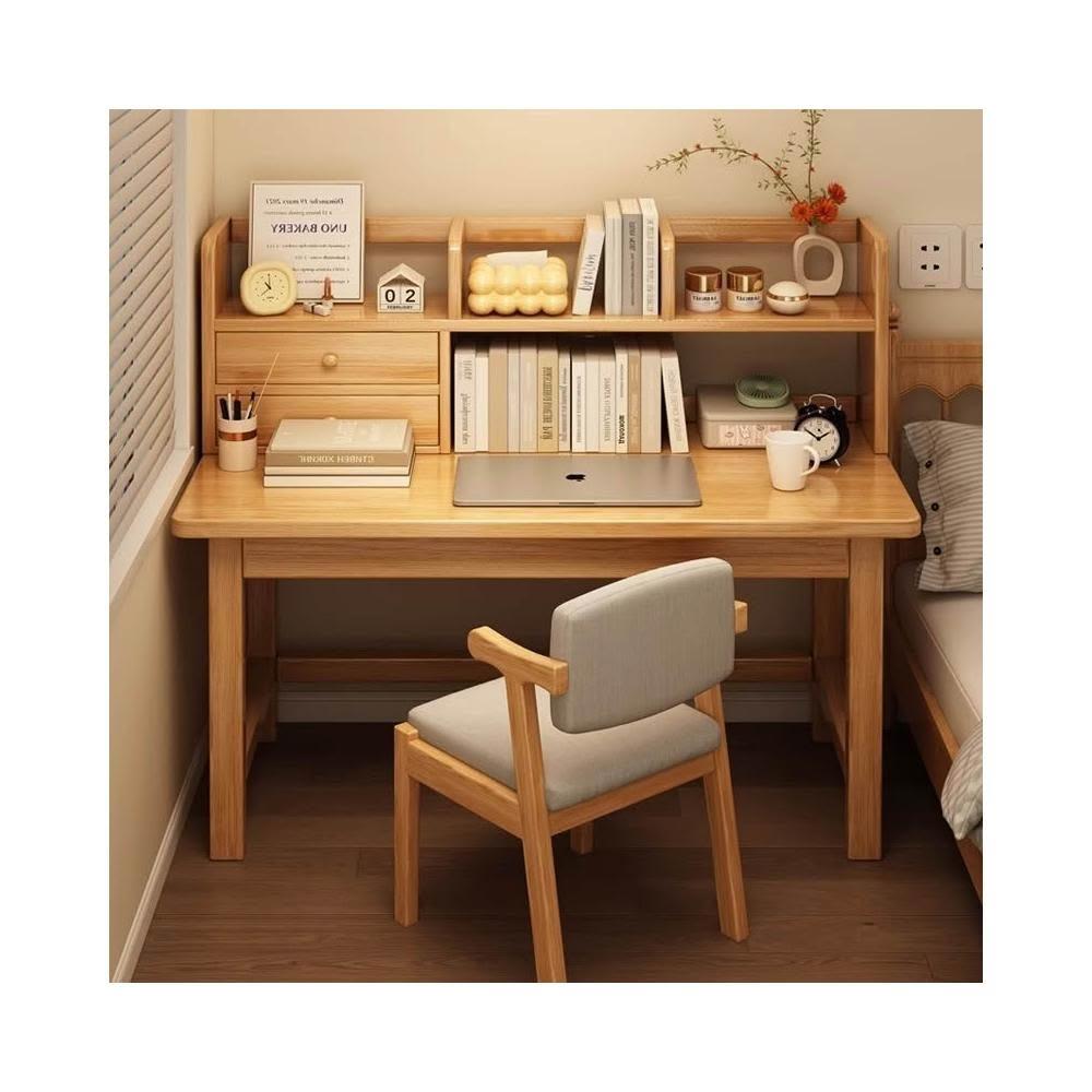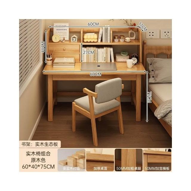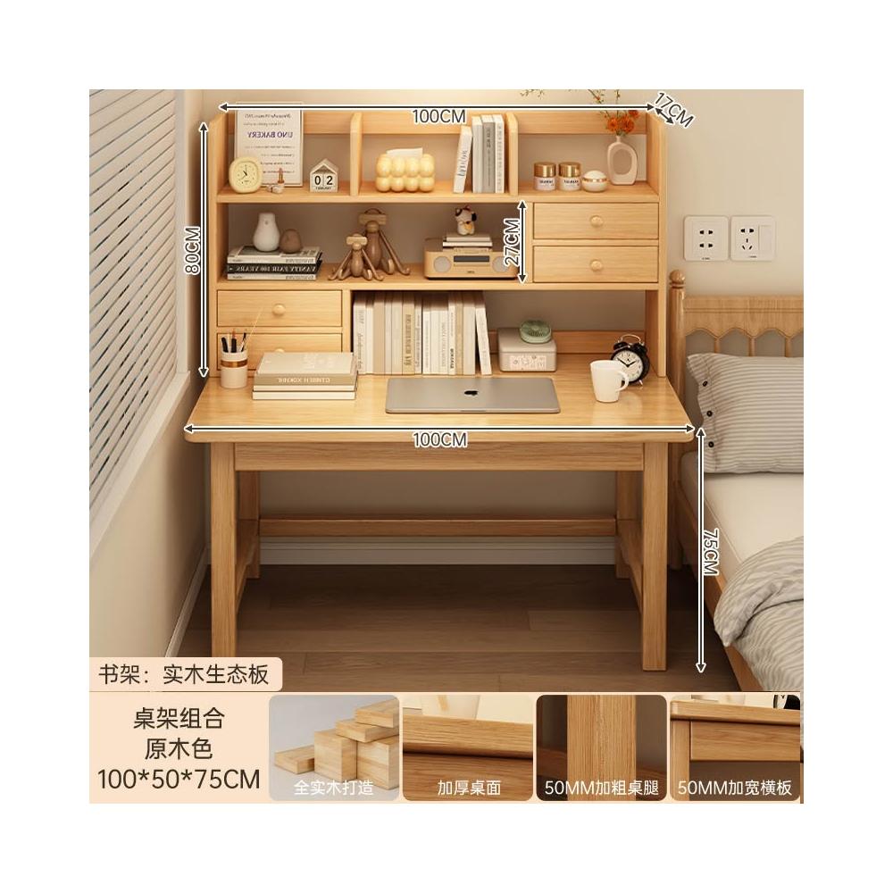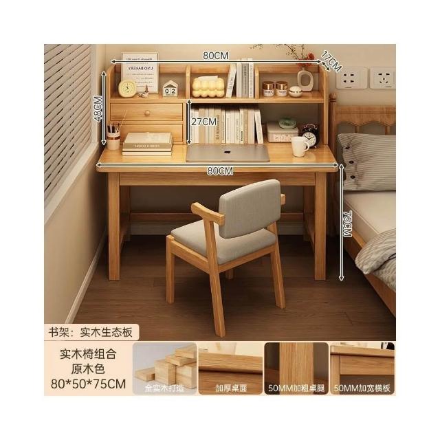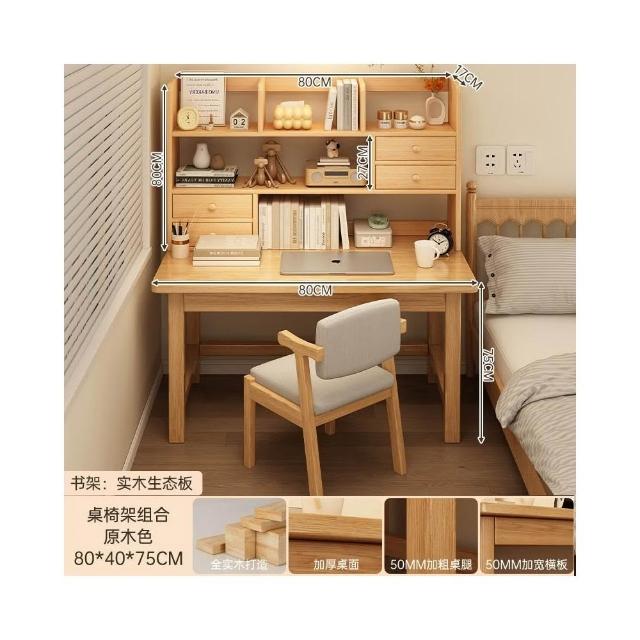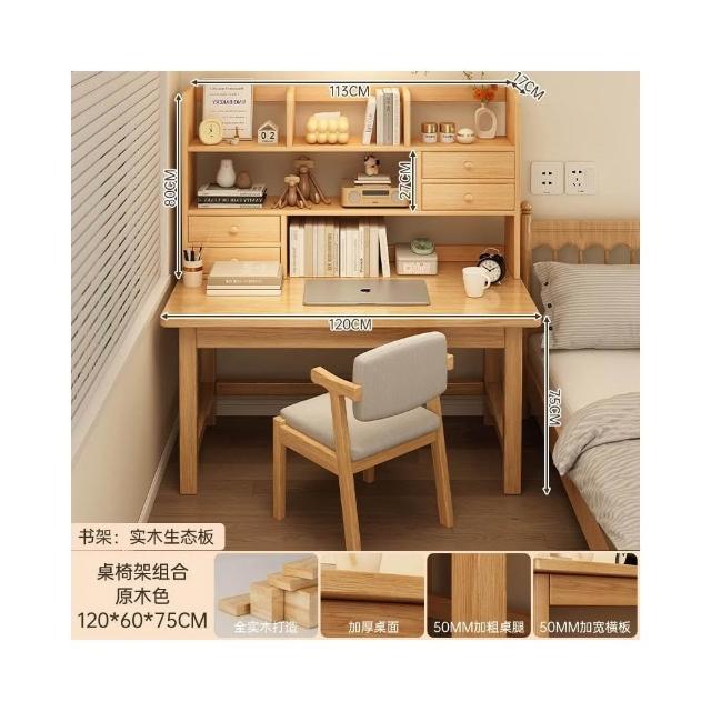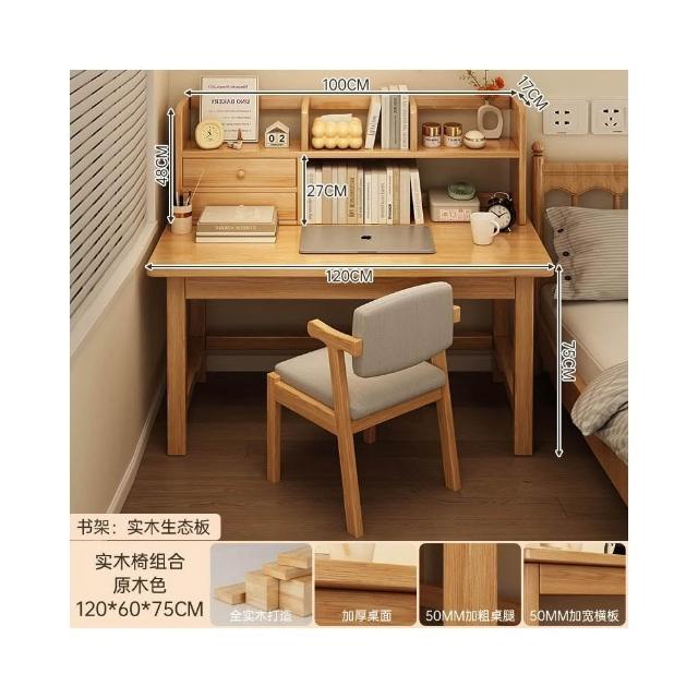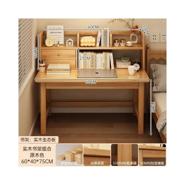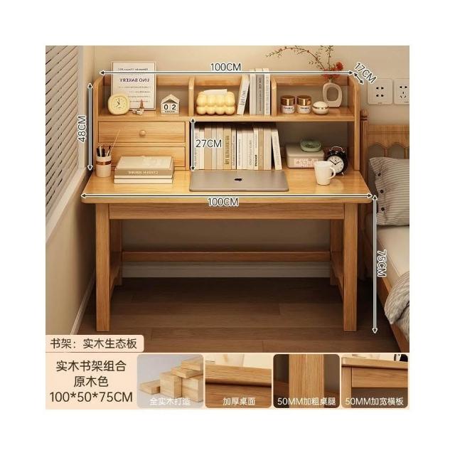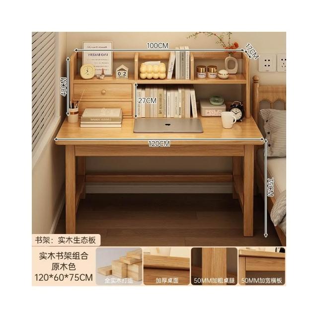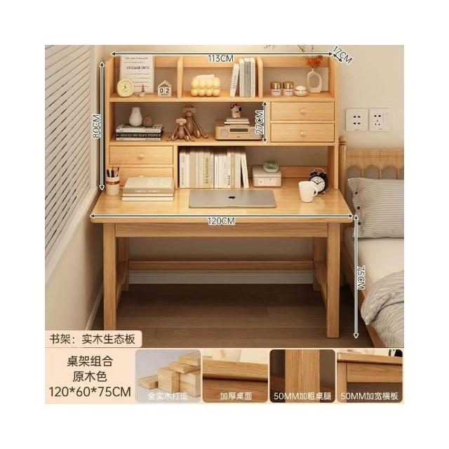 實木書桌書架一體桌學生家用學習寫字桌簡易桌子臥室電腦桌辦公桌