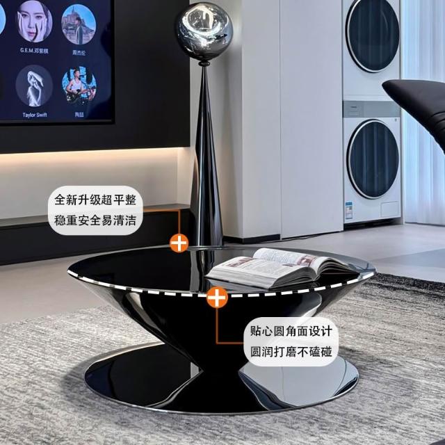爆款法式懸浮飛碟茶几設計師款高級感不銹鋼極簡家用客廳圓形茶几