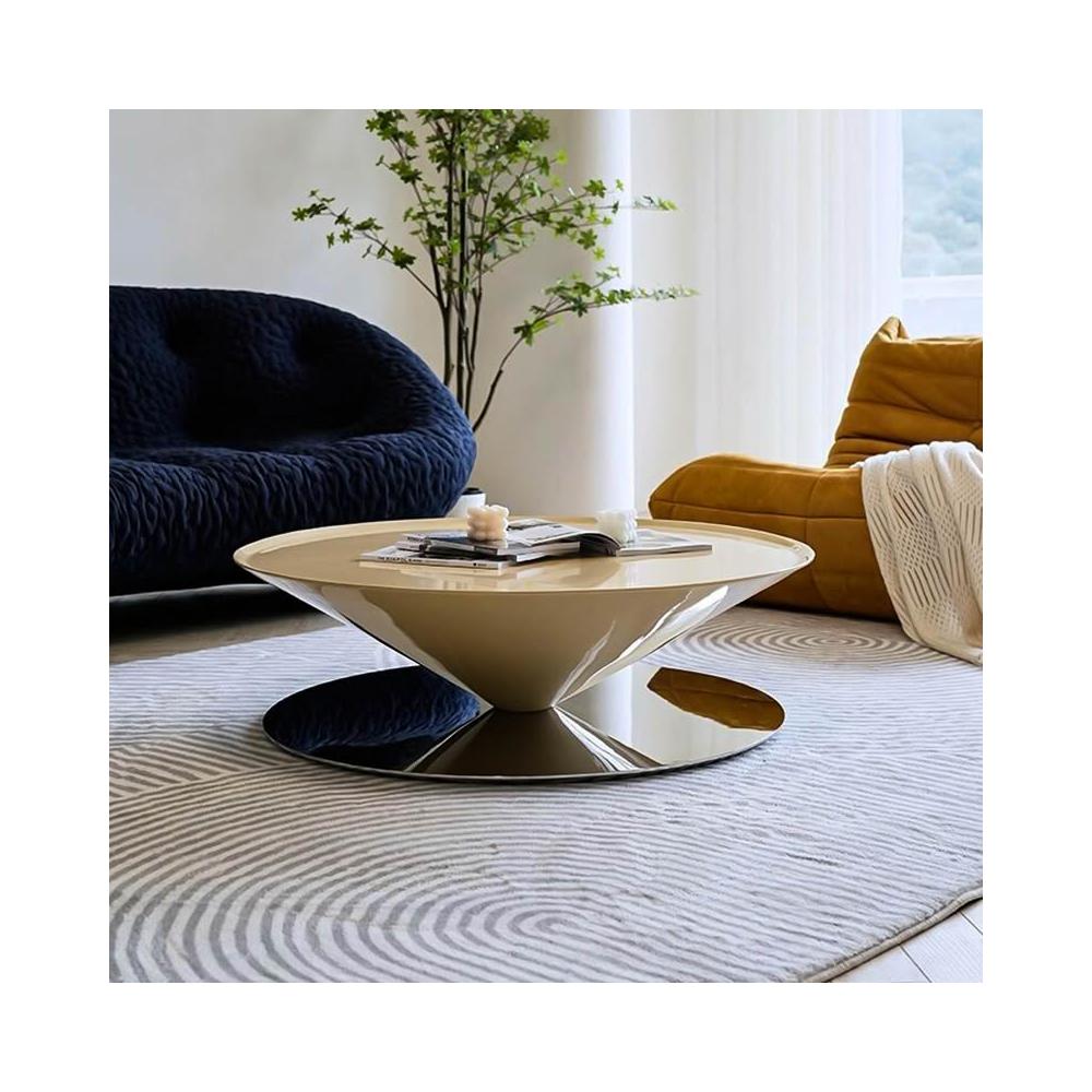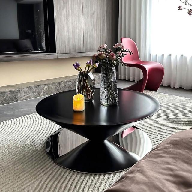 爆款法式懸浮飛碟茶几設計師款高級感不銹鋼極簡家用客廳圓形茶几