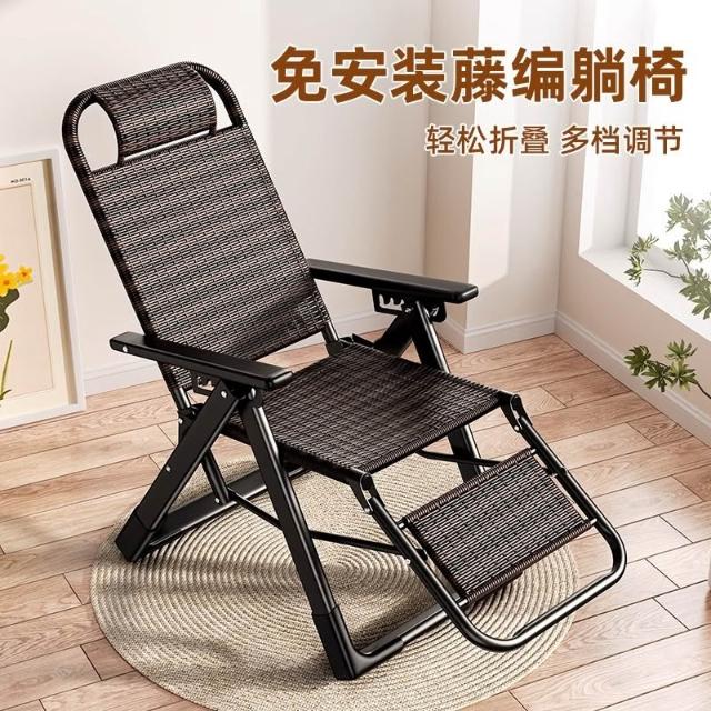 籐椅藤編制折疊午休躺椅家用休閒靠背老人懶椅子耐用午睡床折疊椅