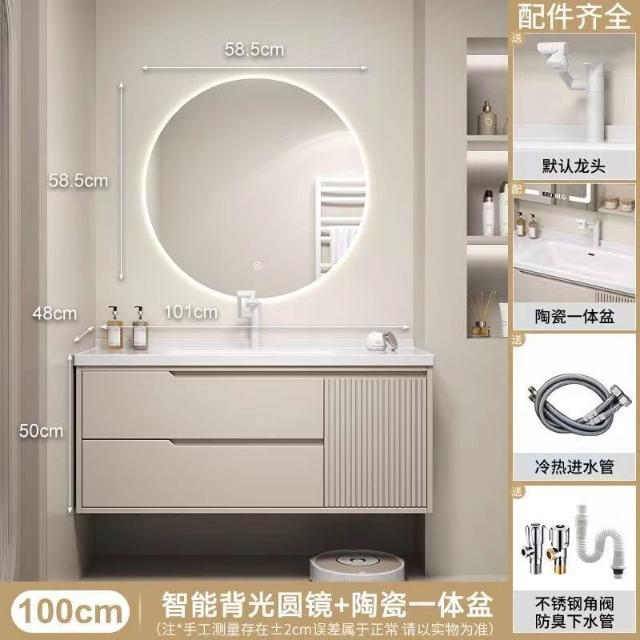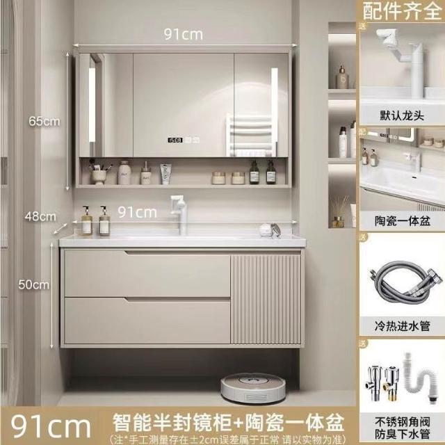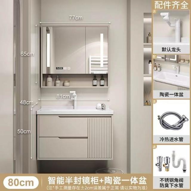實木浴室櫃陶瓷一體盆洗手臺洗手盆臺面一體洗臉盆櫃組合洗手盆
