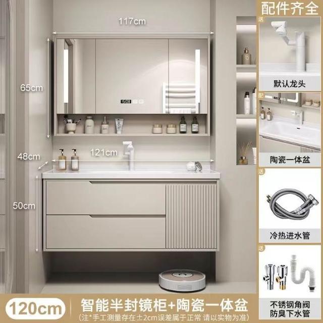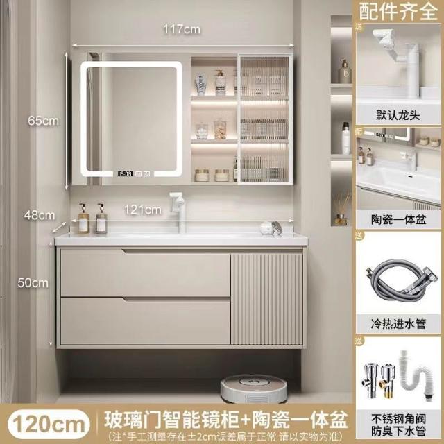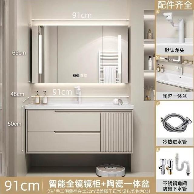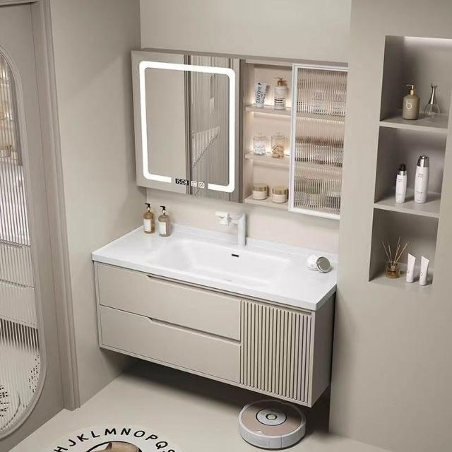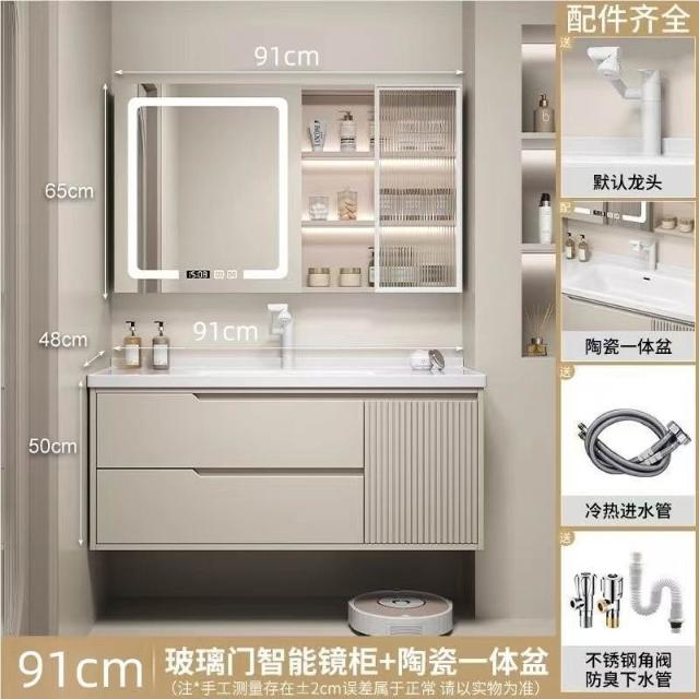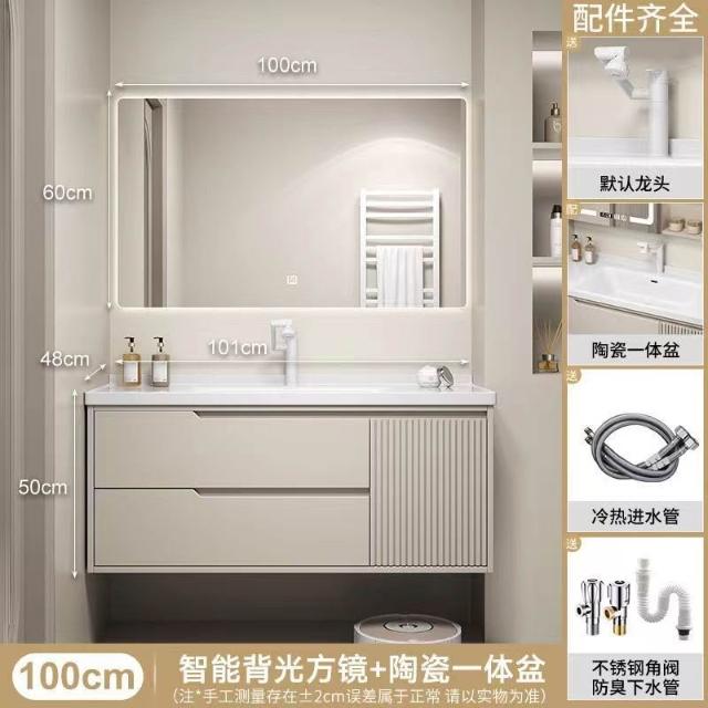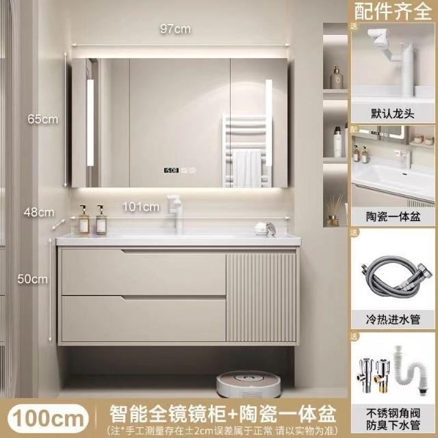 實木浴室櫃陶瓷一體盆洗手臺洗手盆臺面一體洗臉盆櫃組合洗手盆