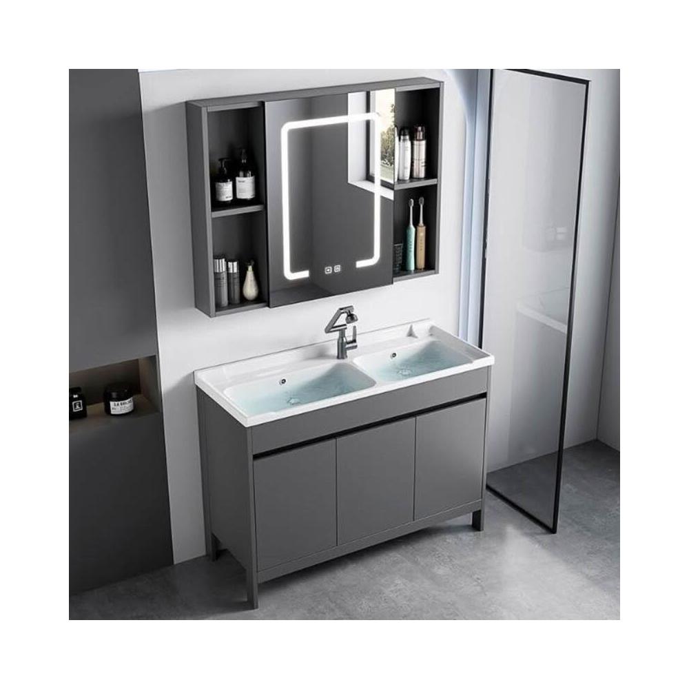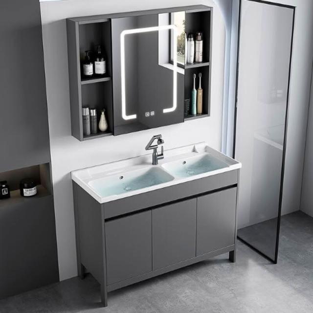 落地式雙盆太空鋁浴室櫃組合雙水槽洗手盆陶瓷一體洗臉盆洗漱臺池