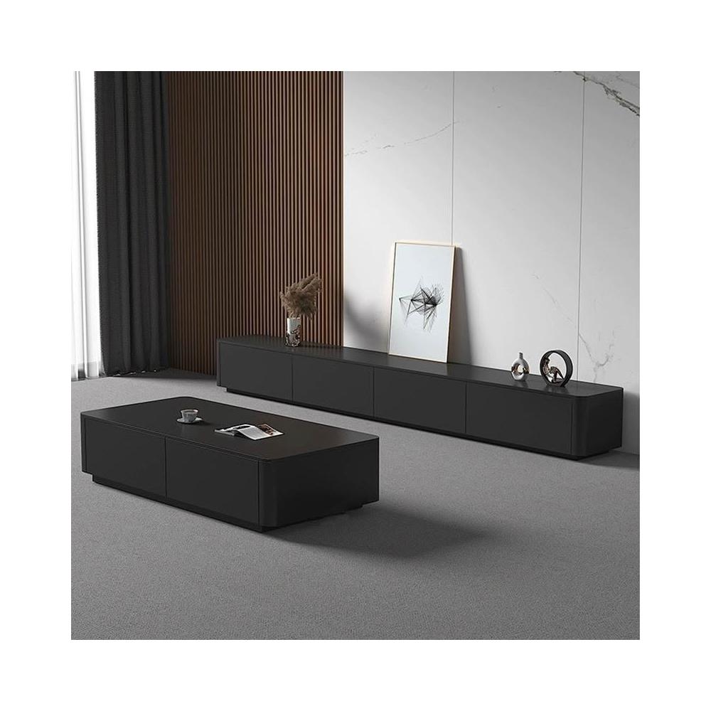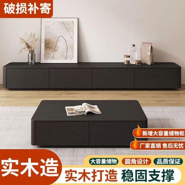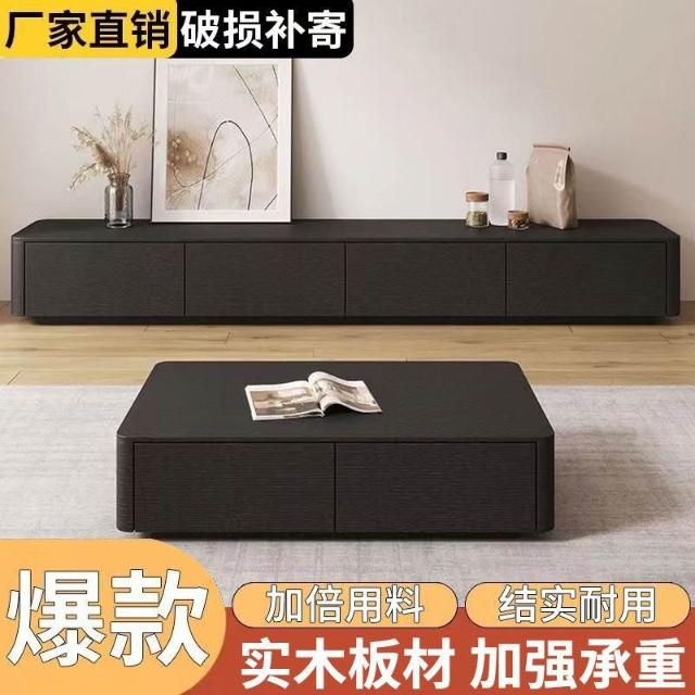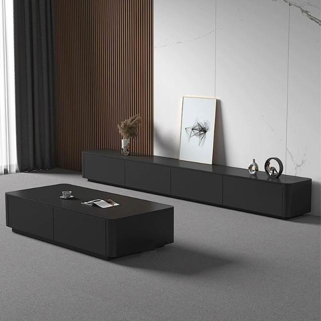 黑色電視櫃茶几組合現代簡約家用小戶型極簡輕奢客廳落地電視機櫃