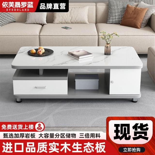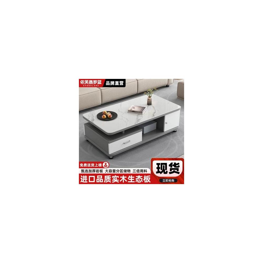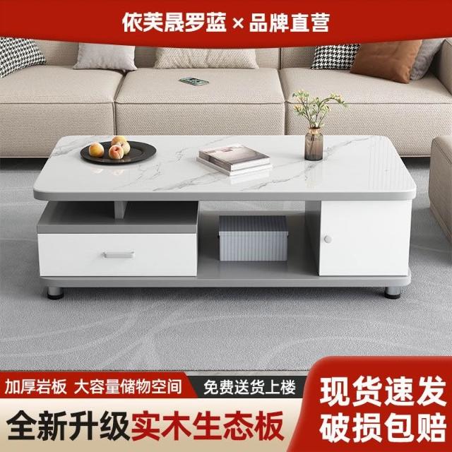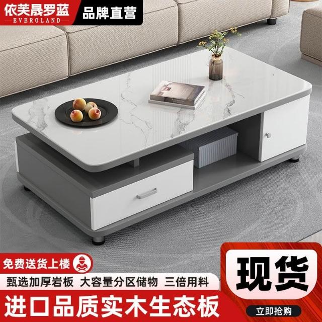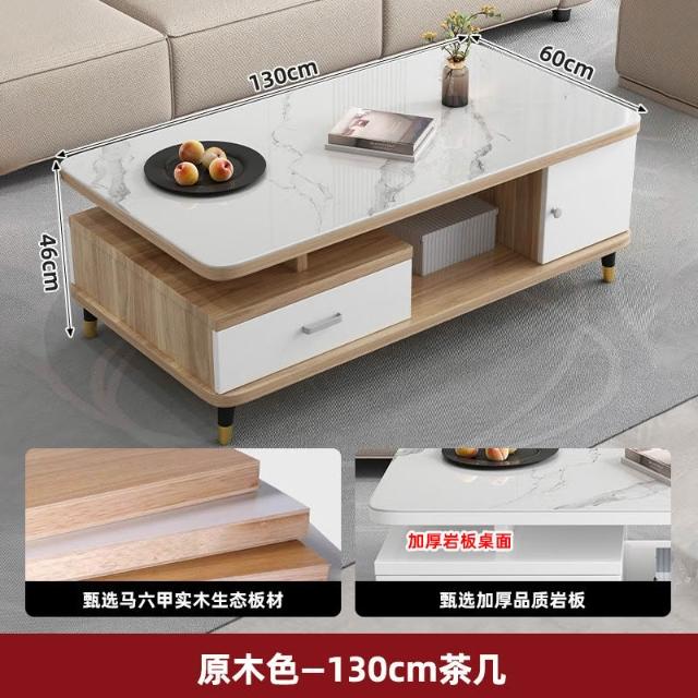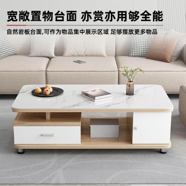3633人收藏 岩板實木茶几小戶型簡約現代輕奢客廳帶抽屜圓角儲物茶几家用桌子