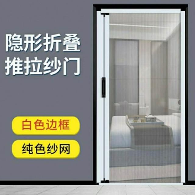 紗窗門防蚊門簾推拉門隱形折疊紗門免打孔鋁合金伸縮移門沙網大熱