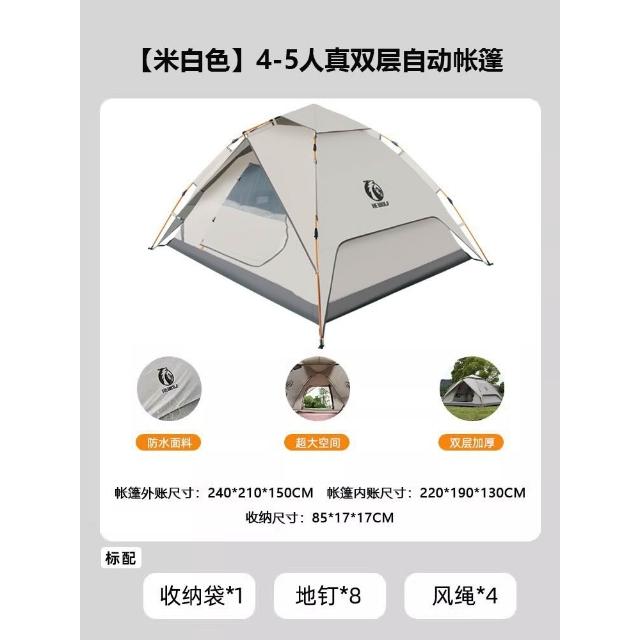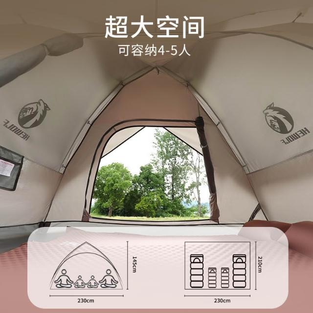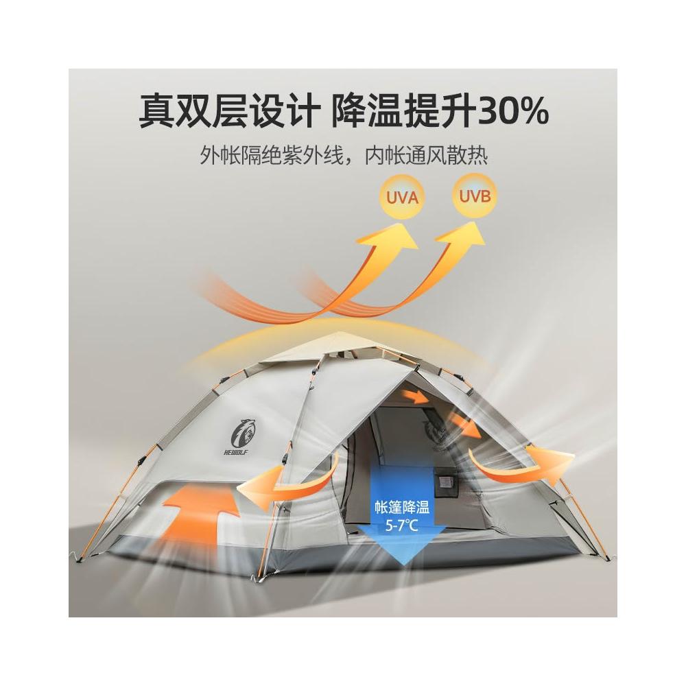 公狼戶外雙層塗銀野餐帳篷全自動折疊可攜式防水防曬速開露營帳篷