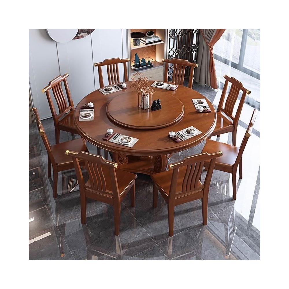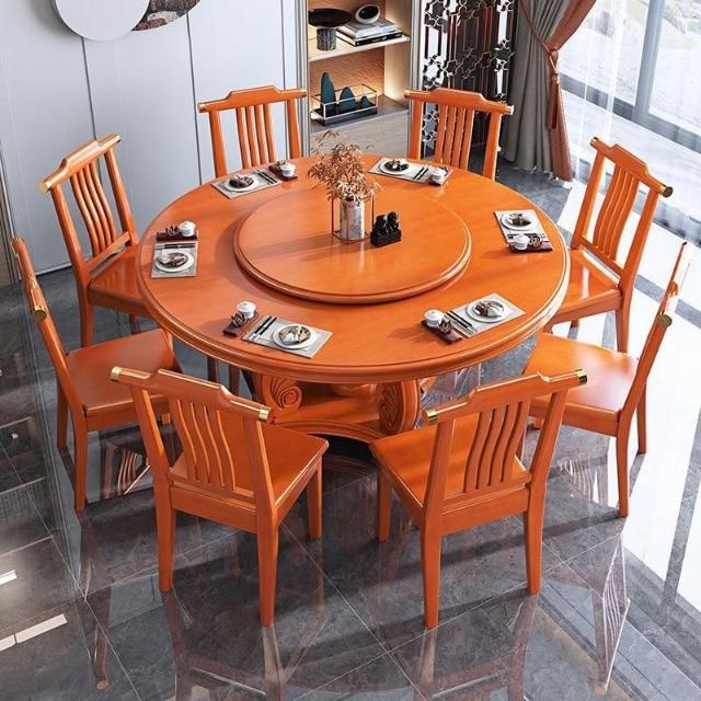 新中式實木餐桌椅組合家用簡約圓餐桌帶轉盤酒店圓形飯桌吃飯桌子