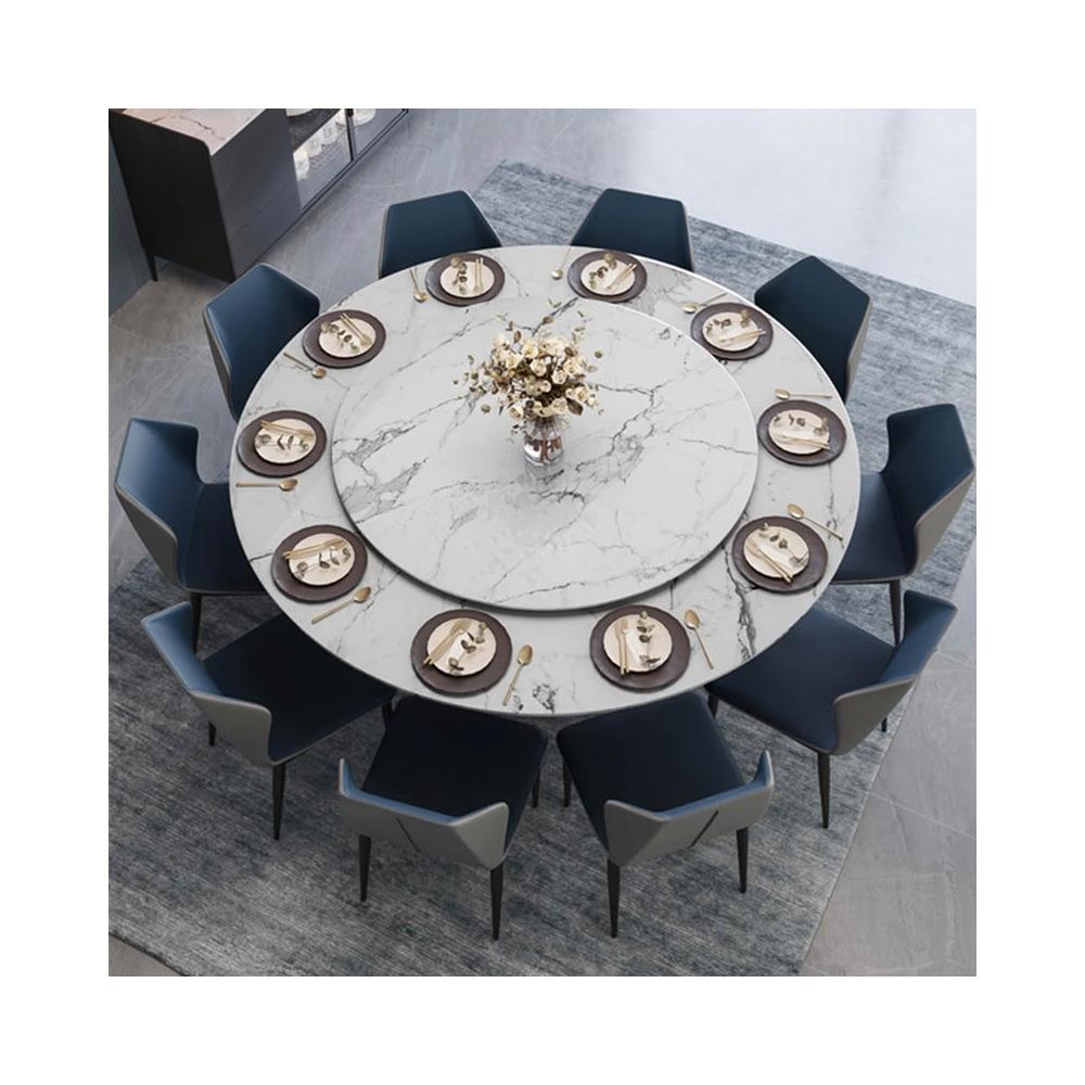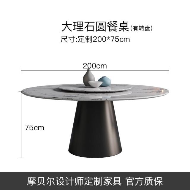 輕奢天然大理石圓形餐桌椅組合圓餐桌家用帶轉盤12人酒店飯桌圓桌