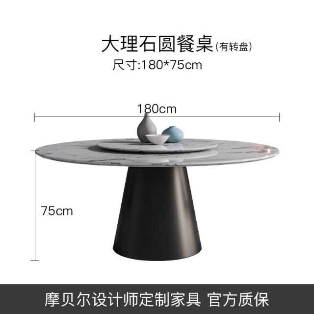 輕奢天然大理石圓形餐桌椅組合圓餐桌家用帶轉盤12人酒店飯桌圓桌