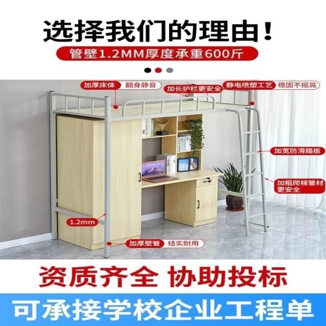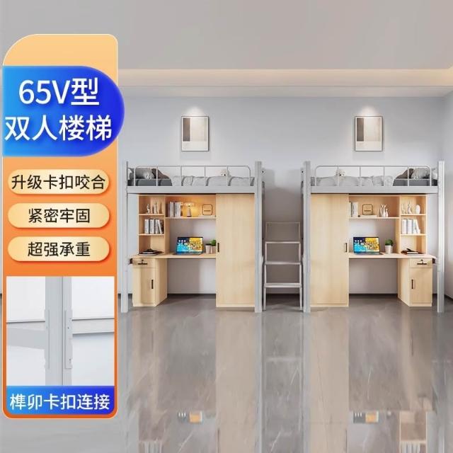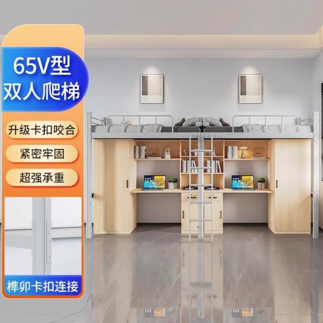 上床下桌組合床家用公寓升級鐵藝雙層床大學生宿舍上床下桌宿舍床
