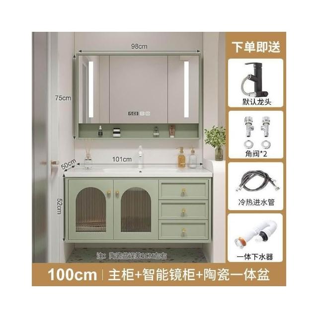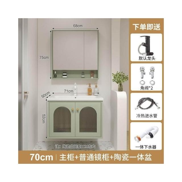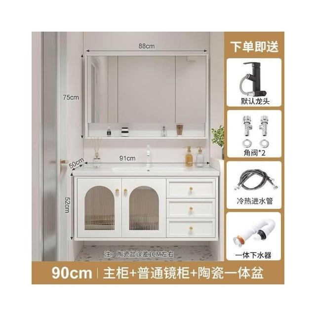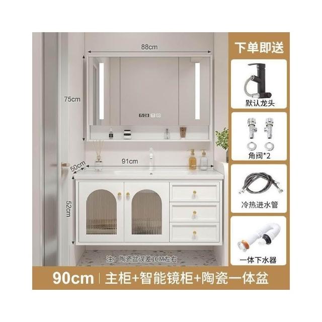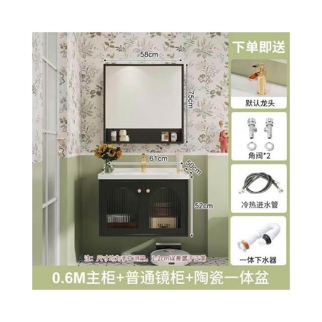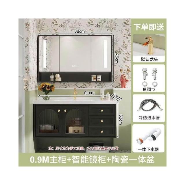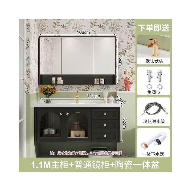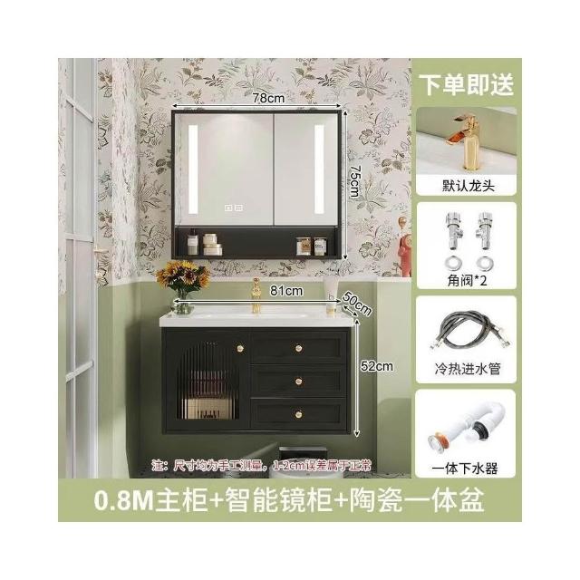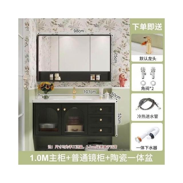 (包安裝)法式橡木浴室柜陶瓷新款式洗手池卫生间洗漱台一体盆套装洗脸盆柜