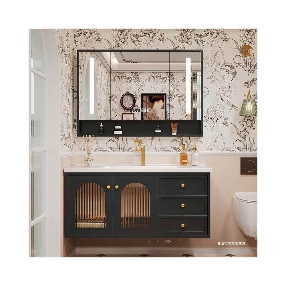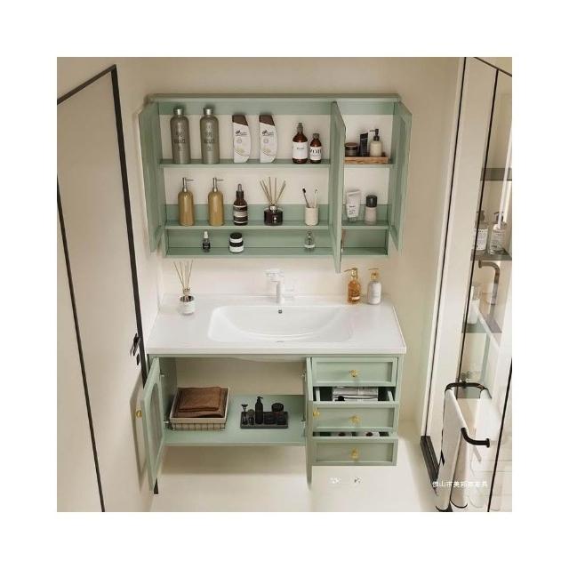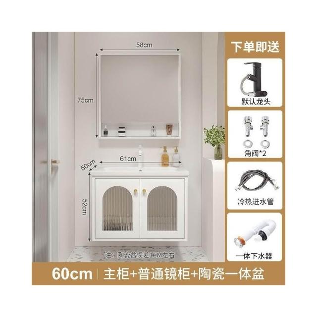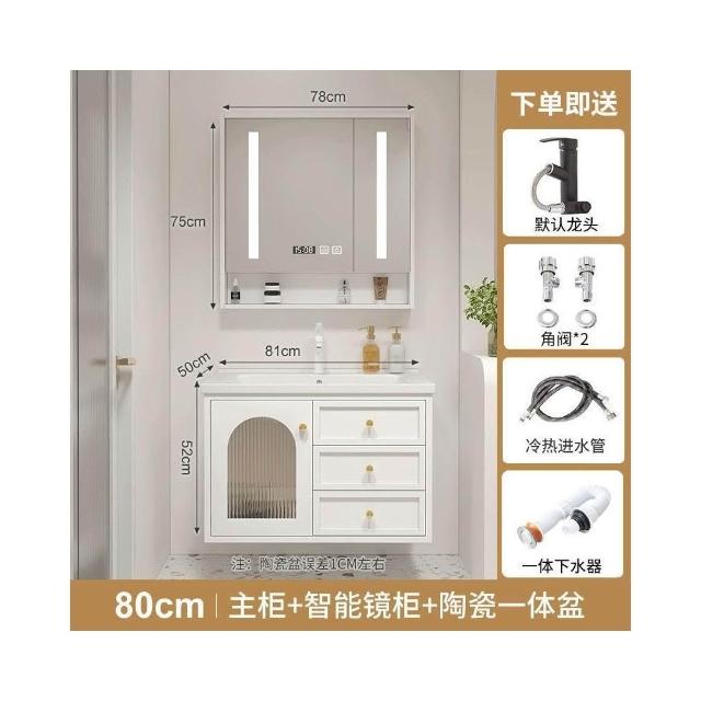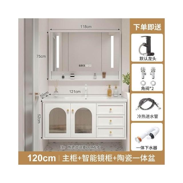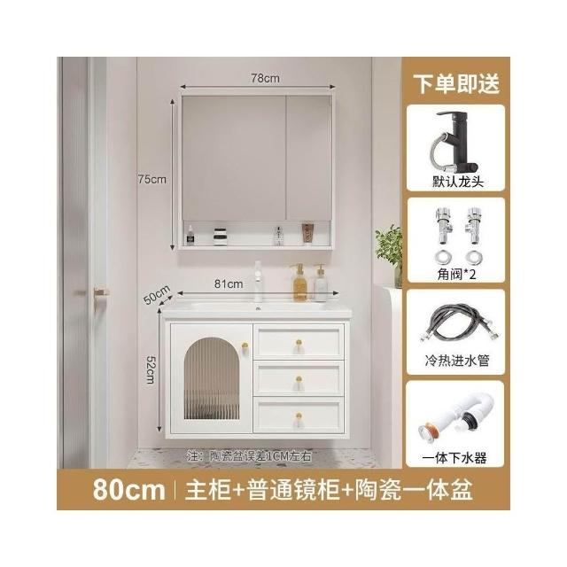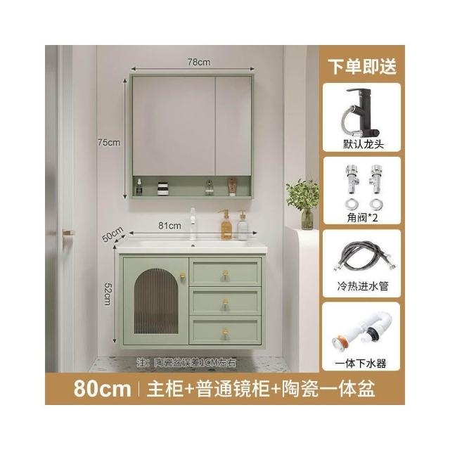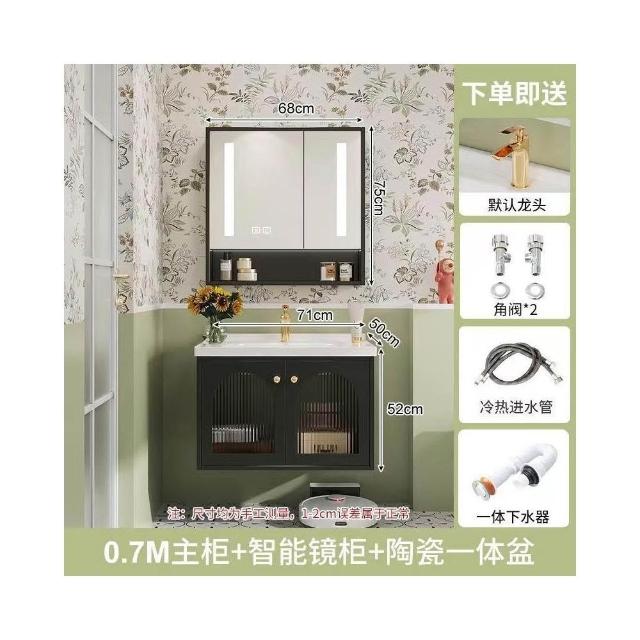 (包安裝)法式橡木浴室柜陶瓷新款式洗手池卫生间洗漱台一体盆套装洗脸盆柜