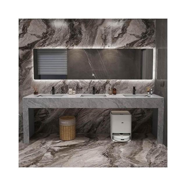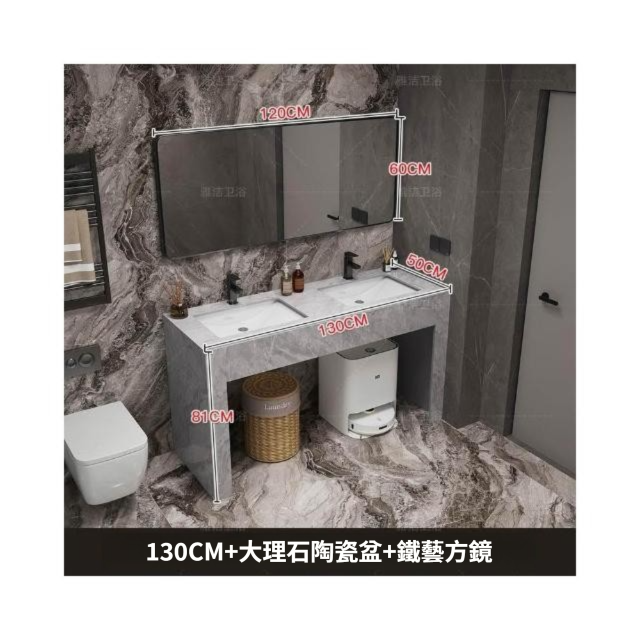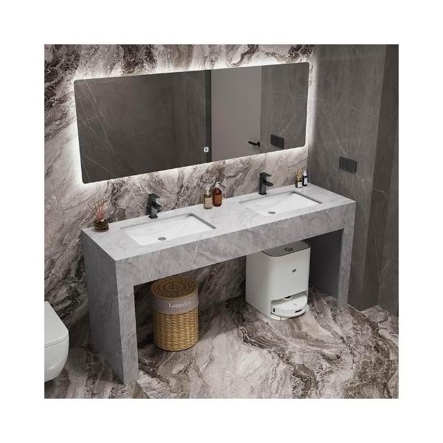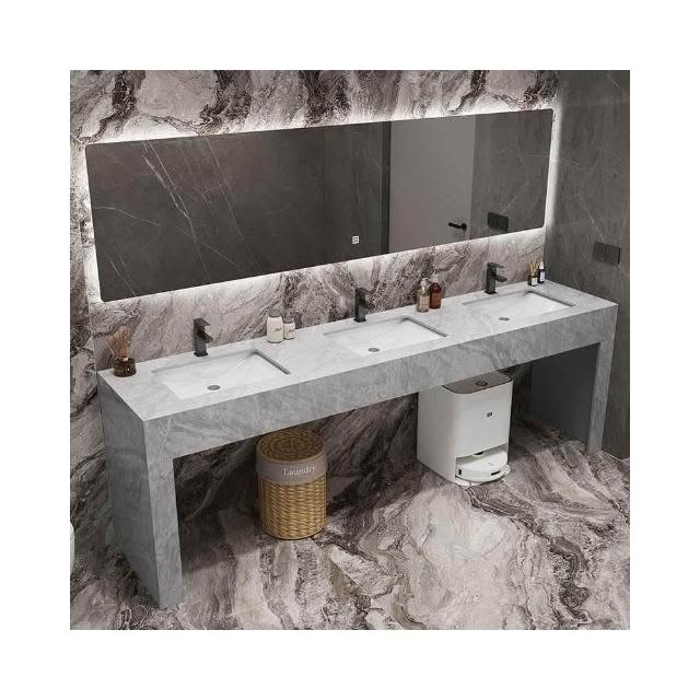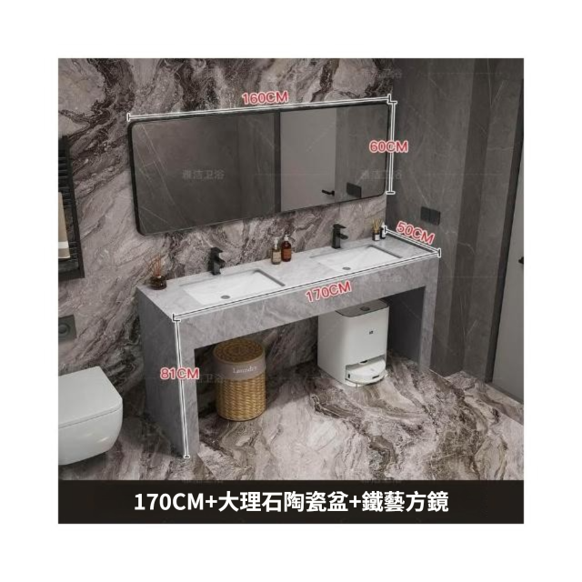 大理石雙盆洗手洗漱臺公共衛生間洗臉盆落地式臺盆櫃組合