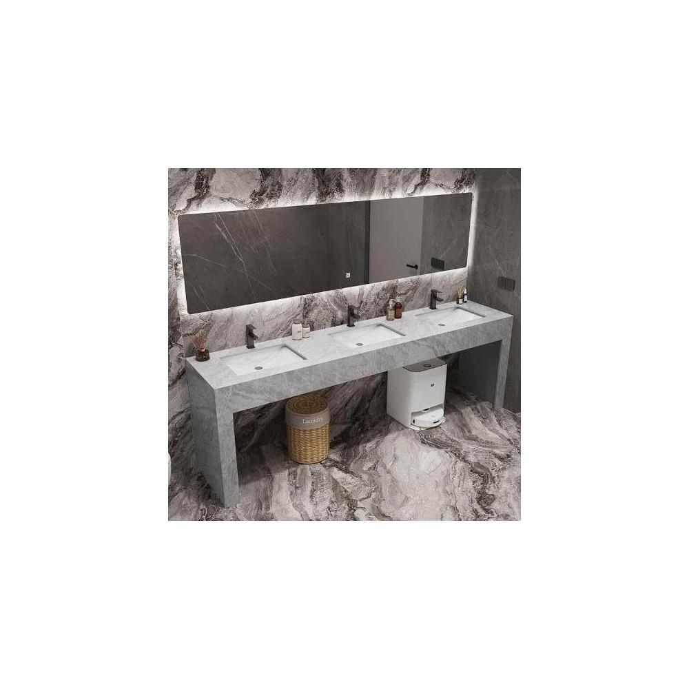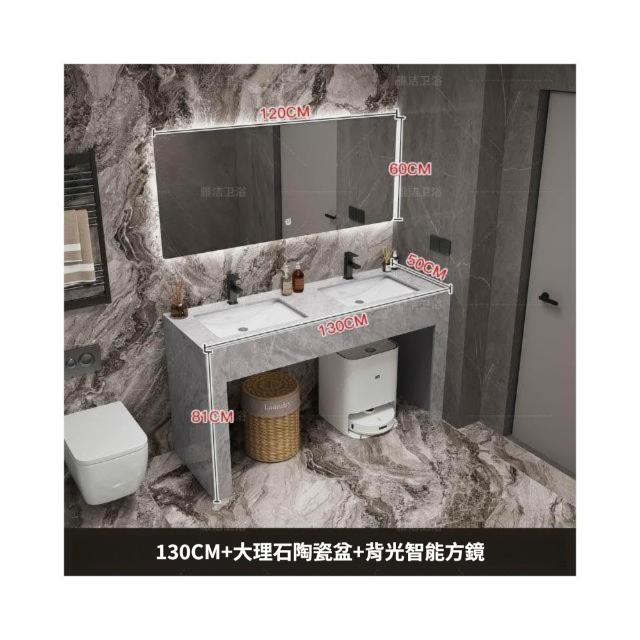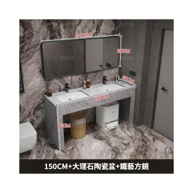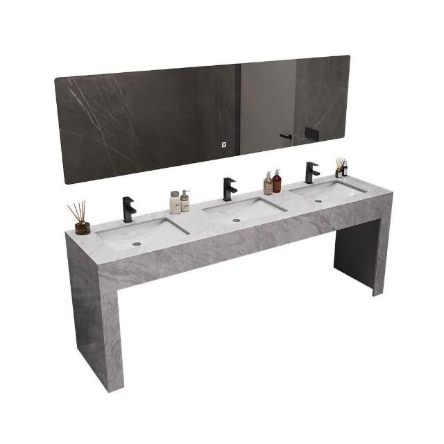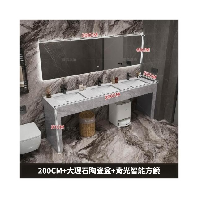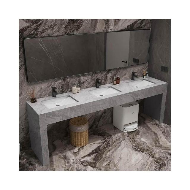 大理石雙盆洗手洗漱臺公共衛生間洗臉盆落地式臺盆櫃組合