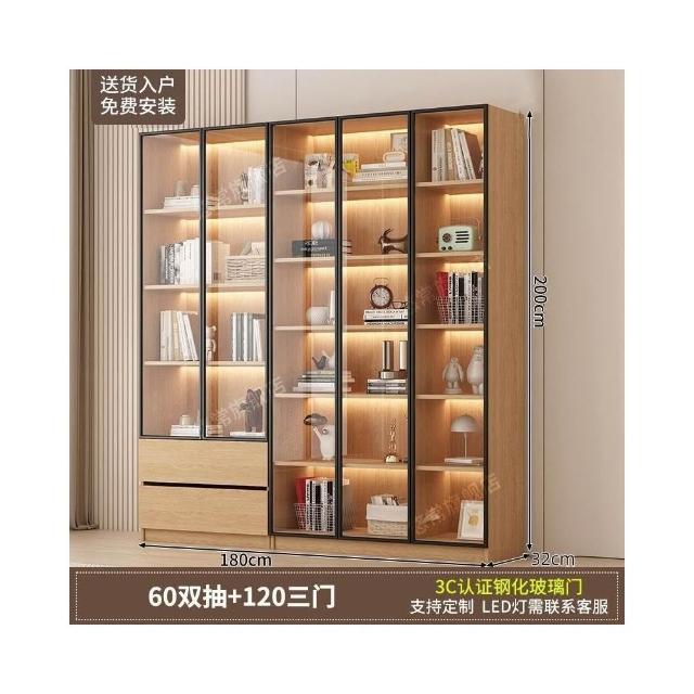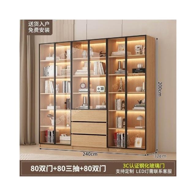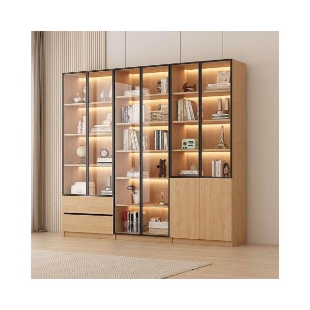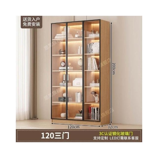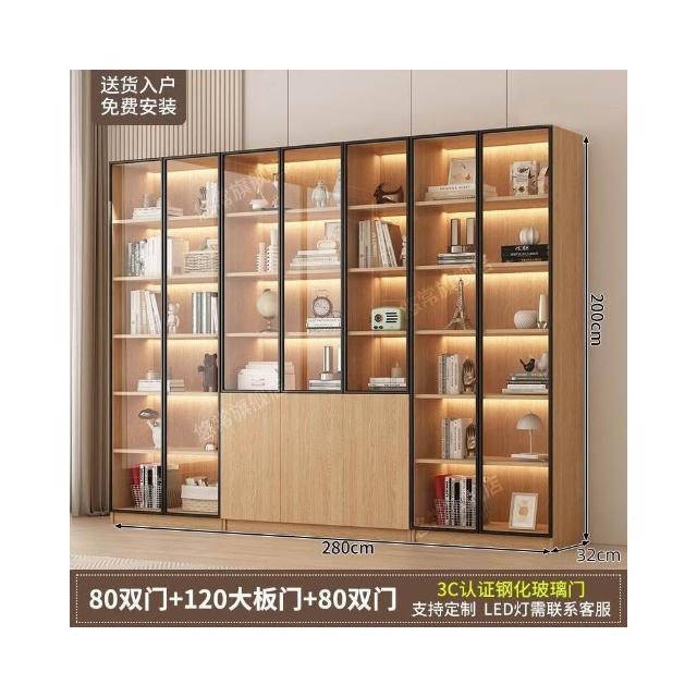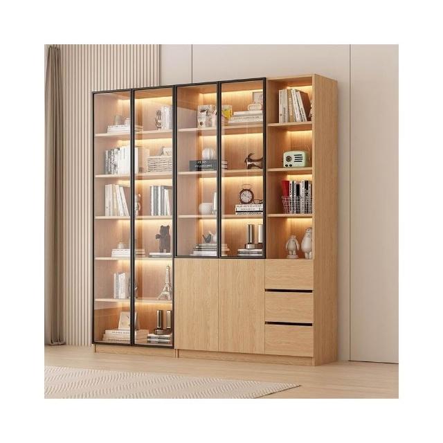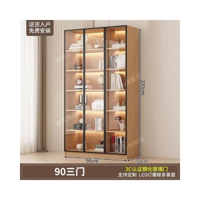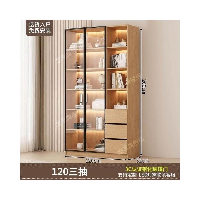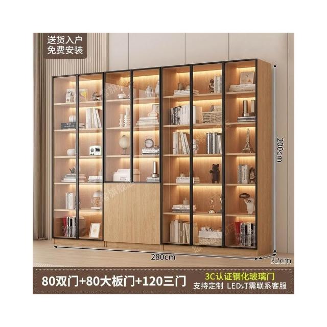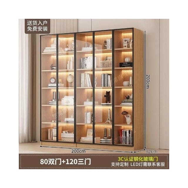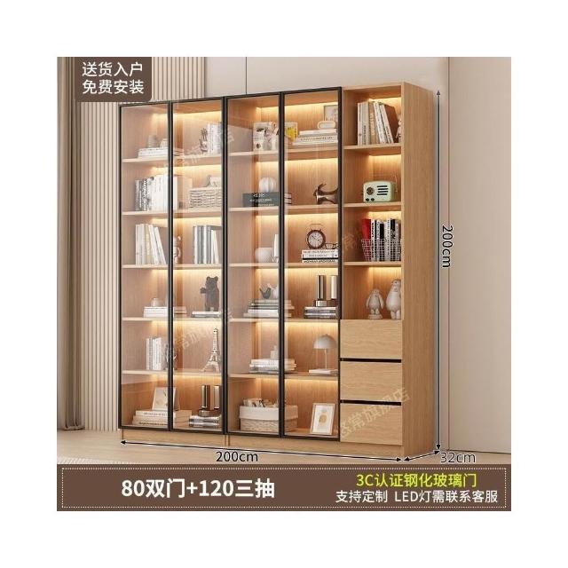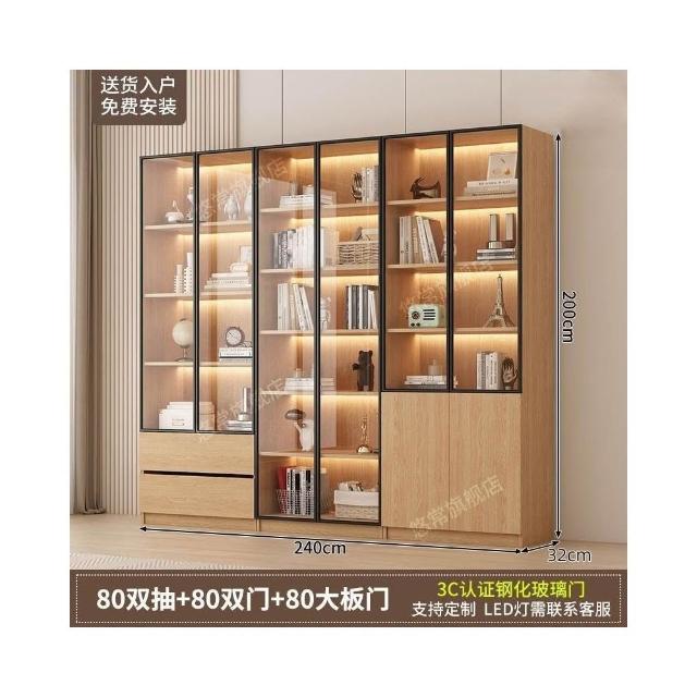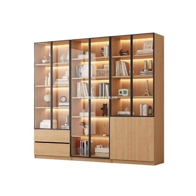 (包安裝)輕奢書櫃家用客廳多功能防塵儲物展示櫃玻璃門原木色落地靠牆書櫥