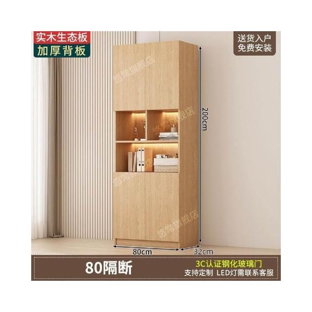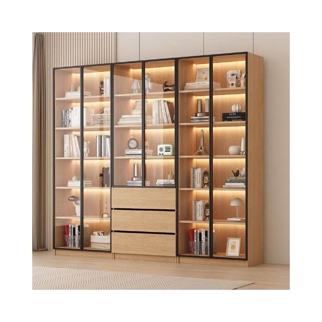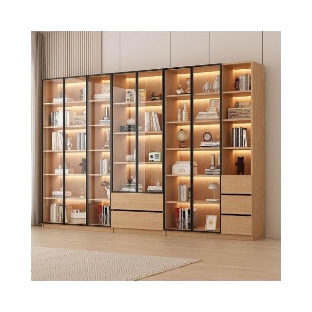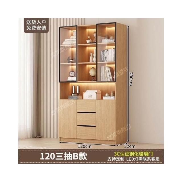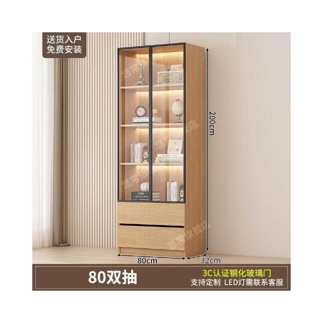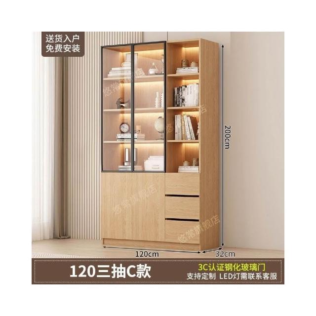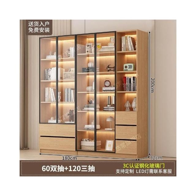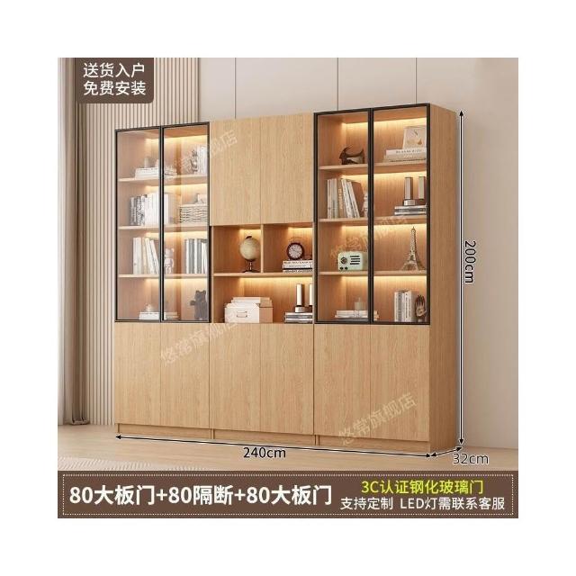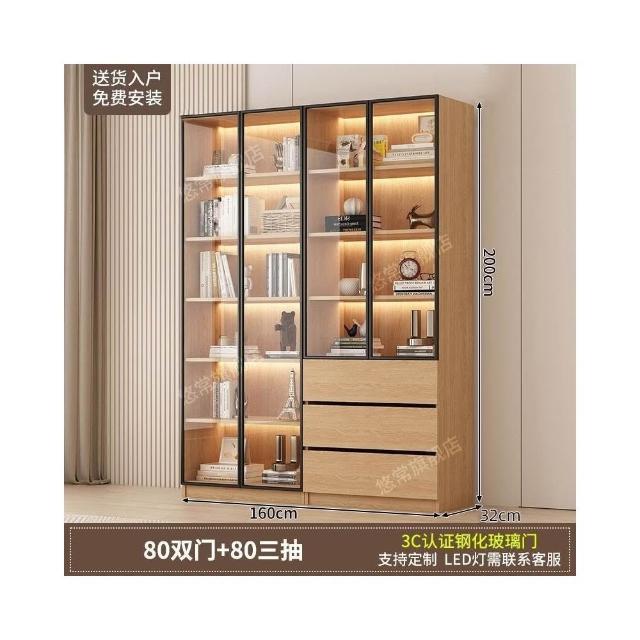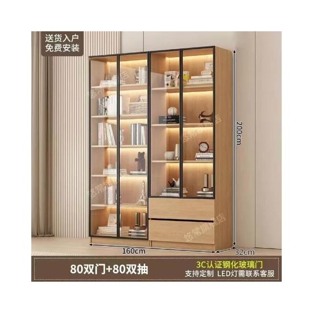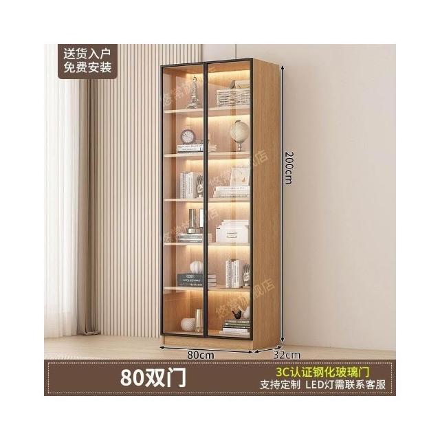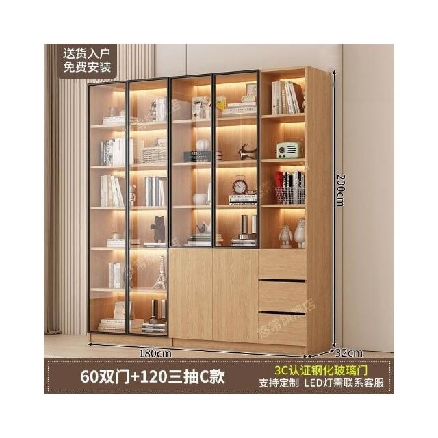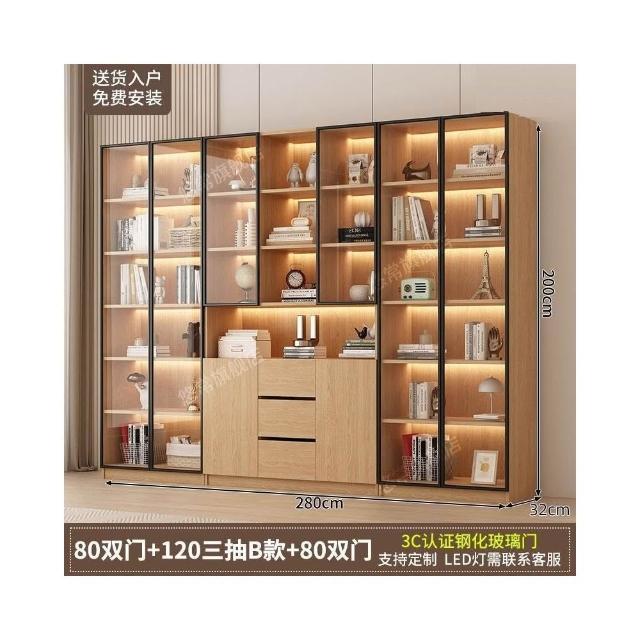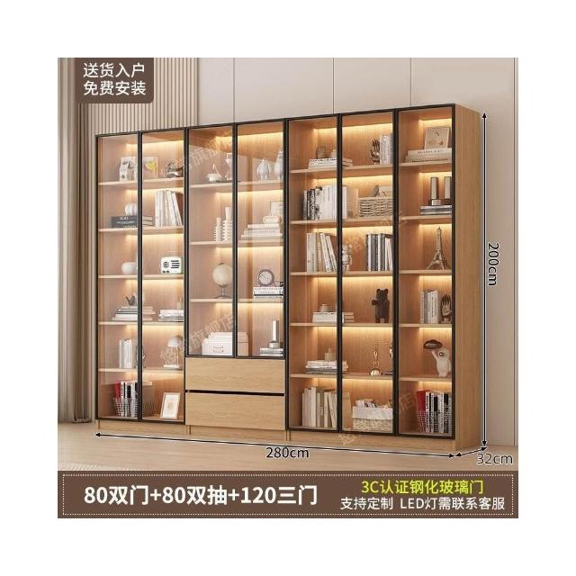 (包安裝)輕奢書櫃家用客廳多功能防塵儲物展示櫃玻璃門原木色落地靠牆書櫥