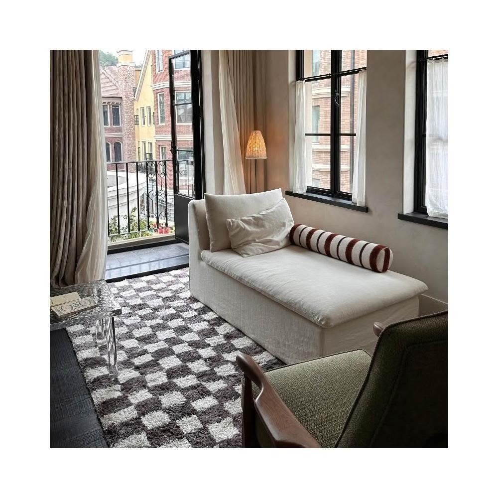 中古侘寂風貴妃椅布藝亞麻全拆洗無扶手客廳民宿酒店臥室床尾沙發
