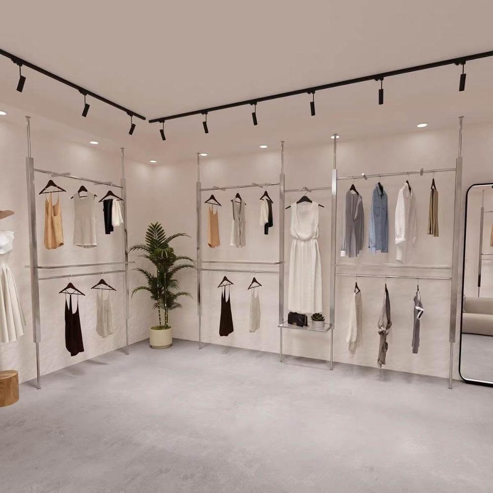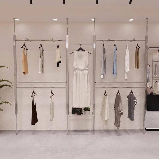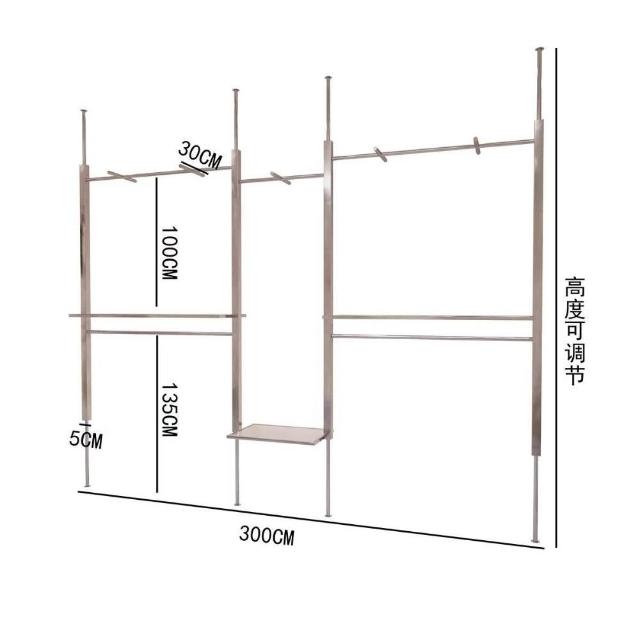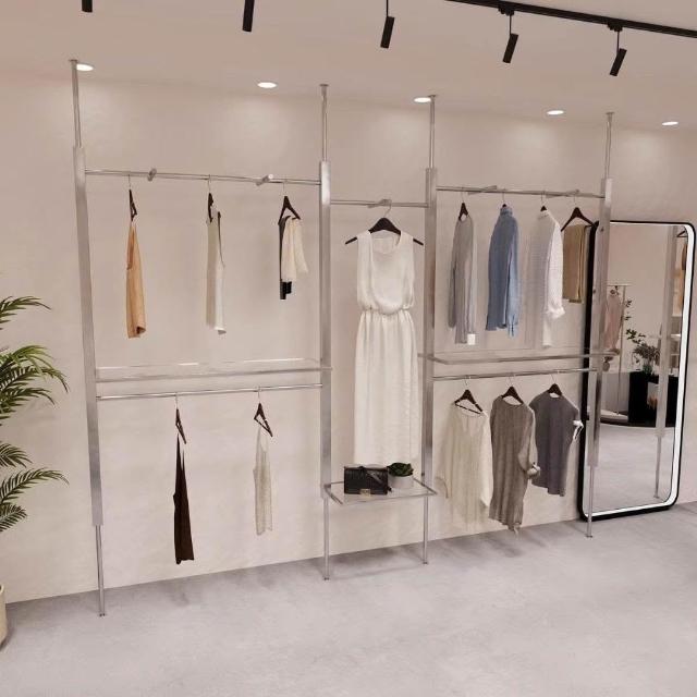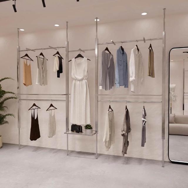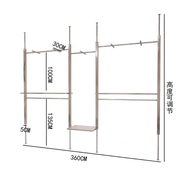 服裝店展示架頂天立地不銹鋼婚紗AA柱可調節陳列架女裝店掛衣貨架