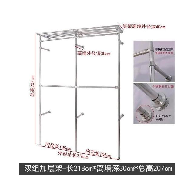 不銹鋼開放式釘牆網紅金屬衣櫃架徹牆衣帽間服裝掛衣杆頂天立地柱