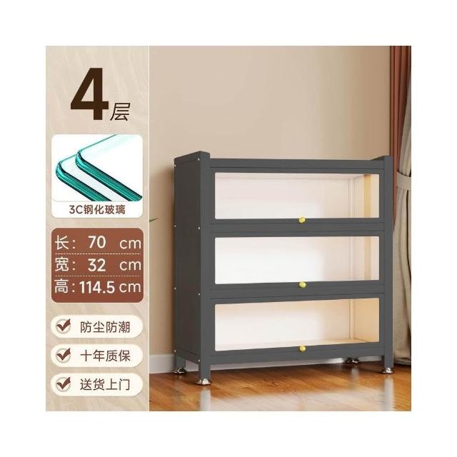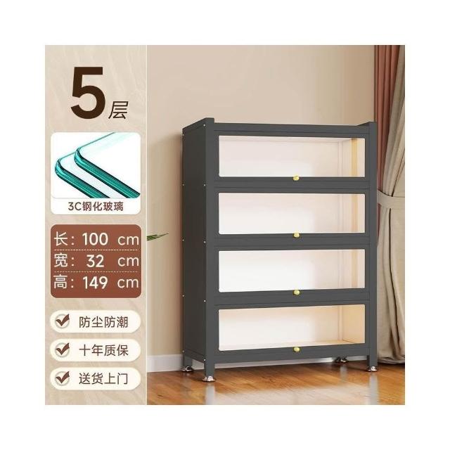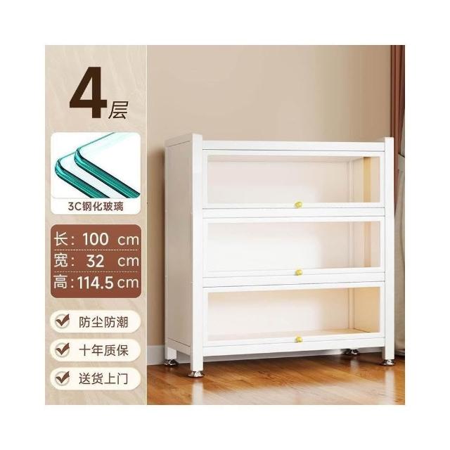 漫歐鋼制書架帶玻璃門防塵書櫃客廳落地多層儲物櫃鐵皮手辦展示櫃