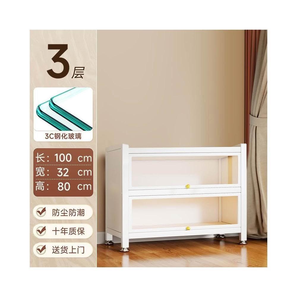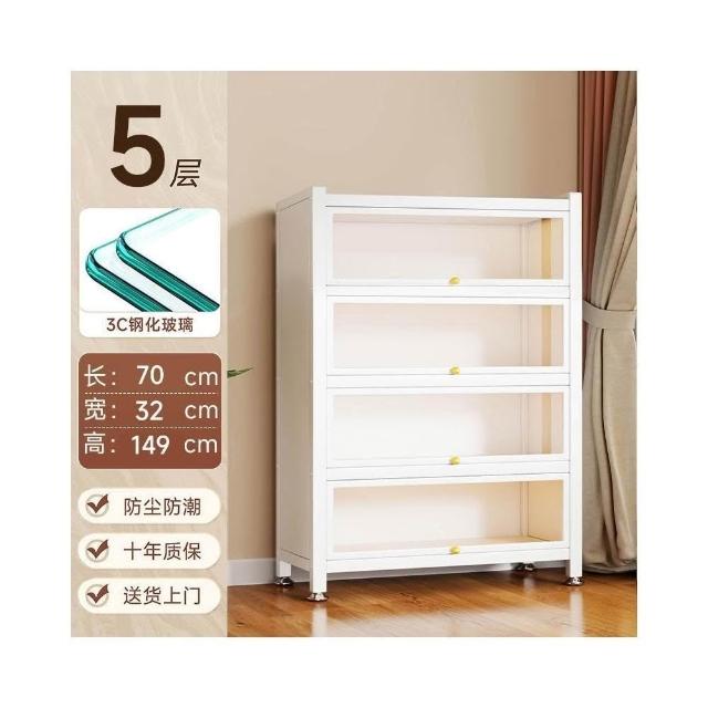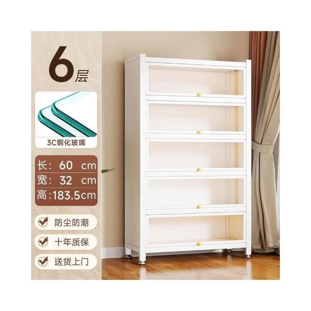 漫歐鋼制書架帶玻璃門防塵書櫃客廳落地多層儲物櫃鐵皮手辦展示櫃