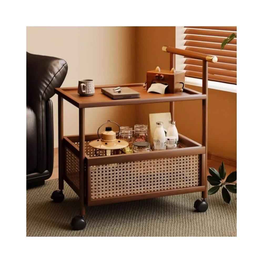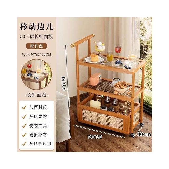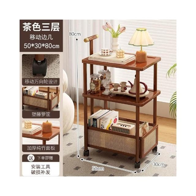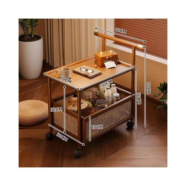 可移動沙發邊幾客廳家用茶几中古風小推車非實木臥室床頭置物架子