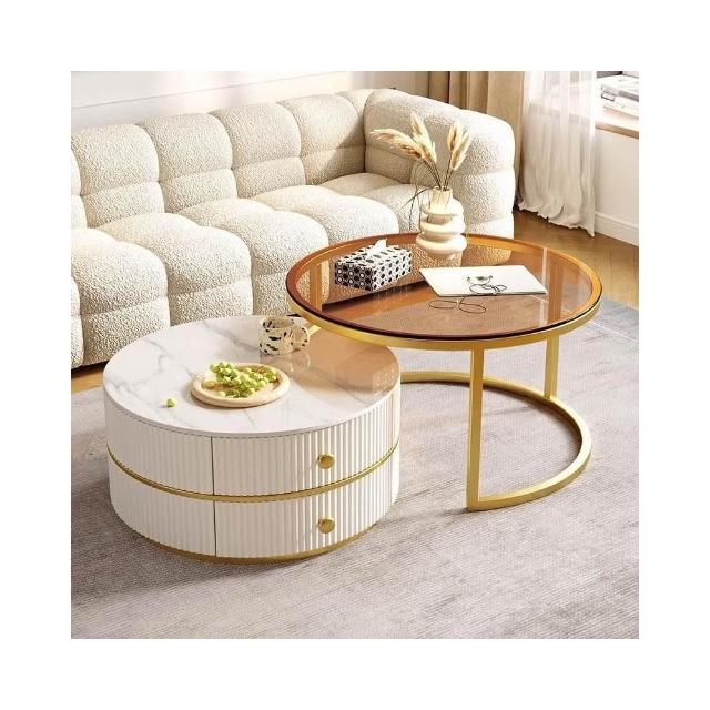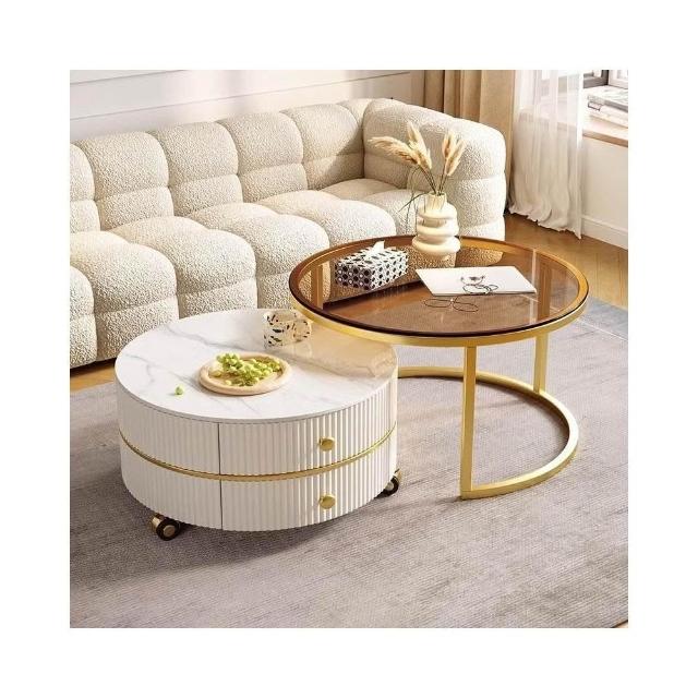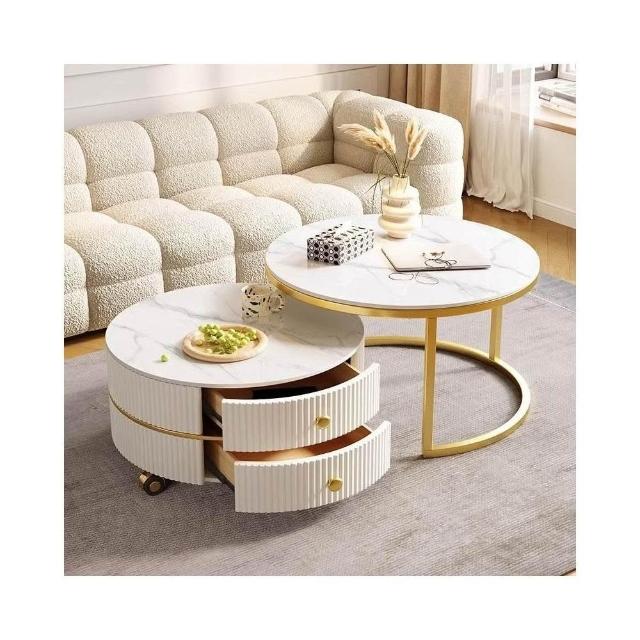 茶几桌客廳家用岩板小戶型輕奢現代圓形感組合茶几奶油風
