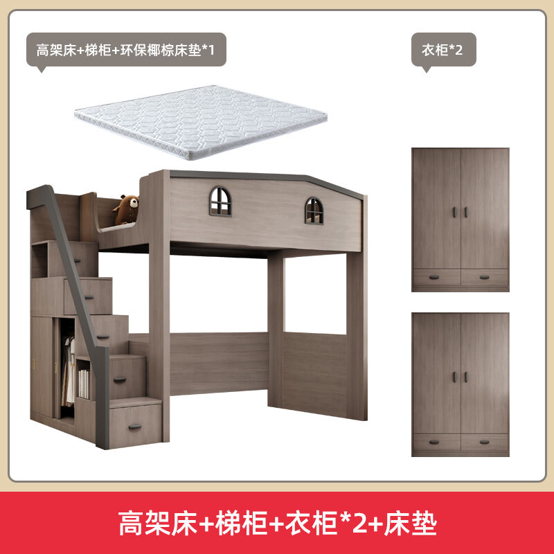 上床下桌書桌衣櫃一體高架床多功能上床下櫃成人上下鋪組合