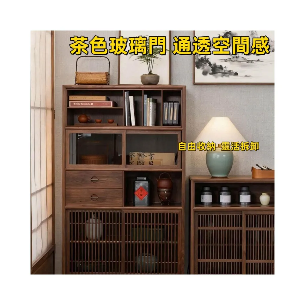 新中式黑胡桃實木宋式美學博古架置物架展示櫃多寶閣茶櫃書櫃