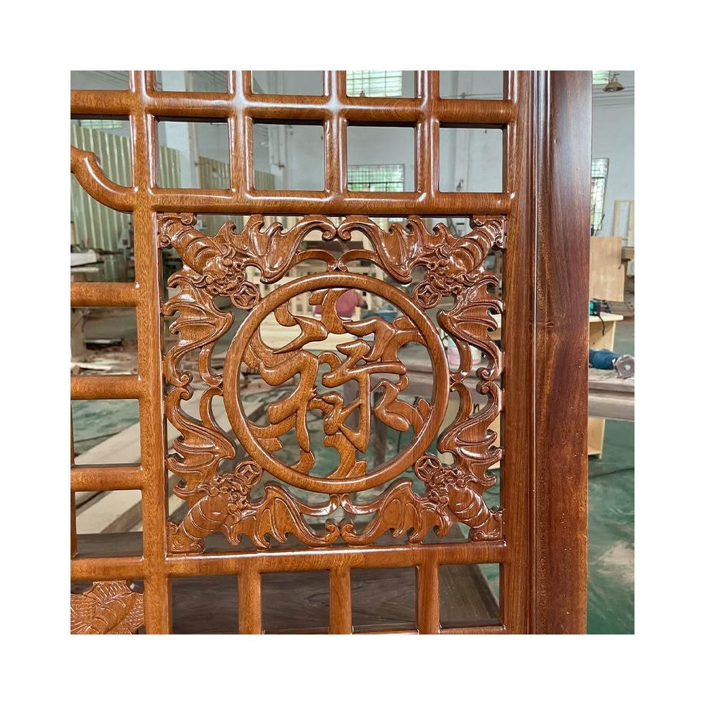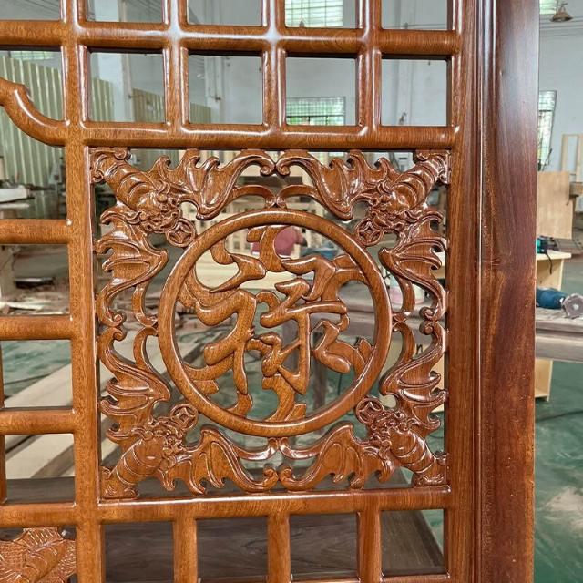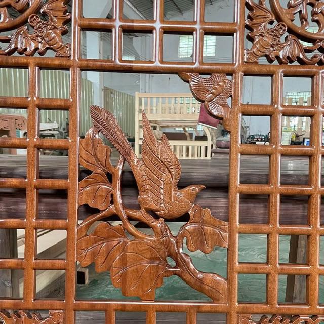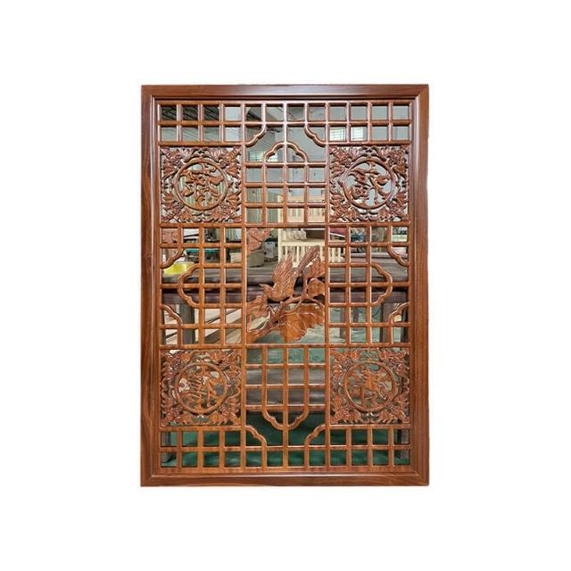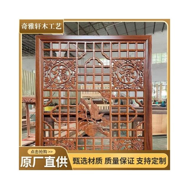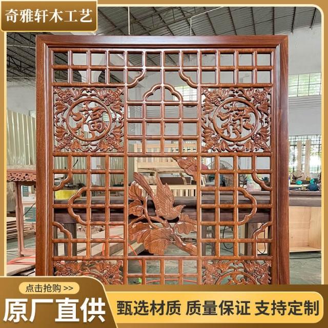 中式實木雕刻屏風隔斷入戶客廳镂空實木花格裝飾背景墻玄關花格窗