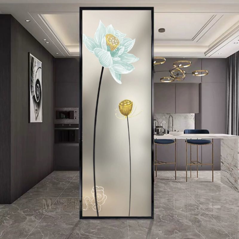 磨砂藝術鋼化玻璃隔斷客廳遮擋入戶玄關走廊過道房間隔斷屏風