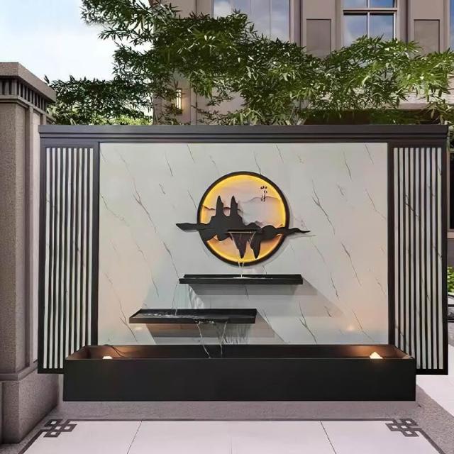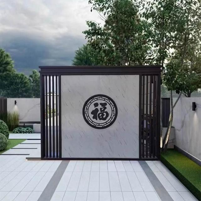 ➲不銹鋼影壁墻屏風隔斷別墅庭院福字迎門墻金屬背景墻戶外流水景