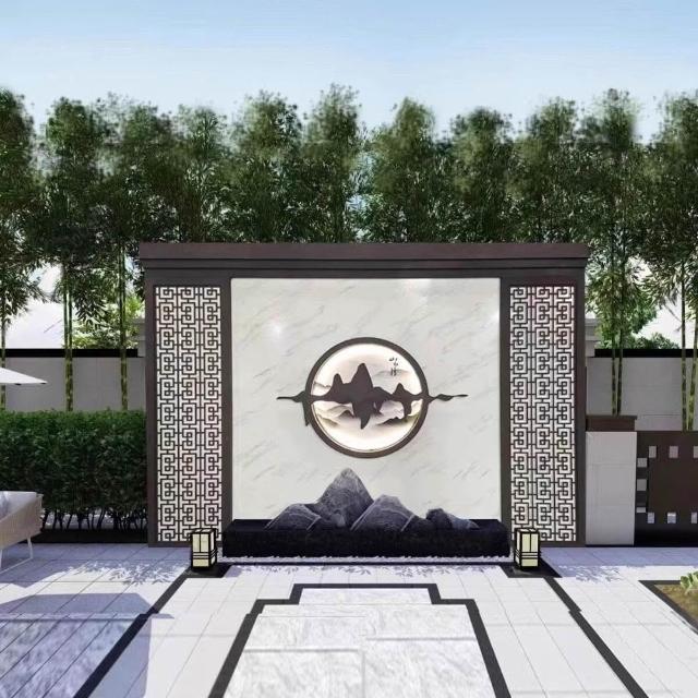 ➲不銹鋼影壁墻屏風隔斷別墅庭院福字迎門墻金屬背景墻戶外流水景