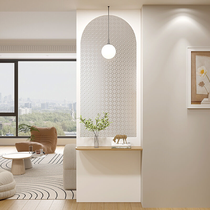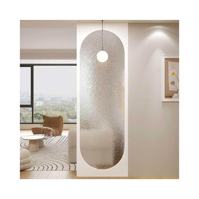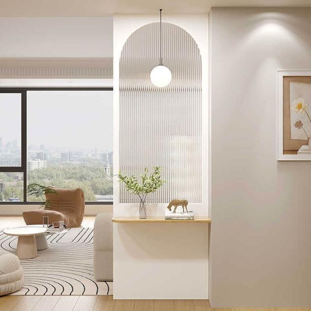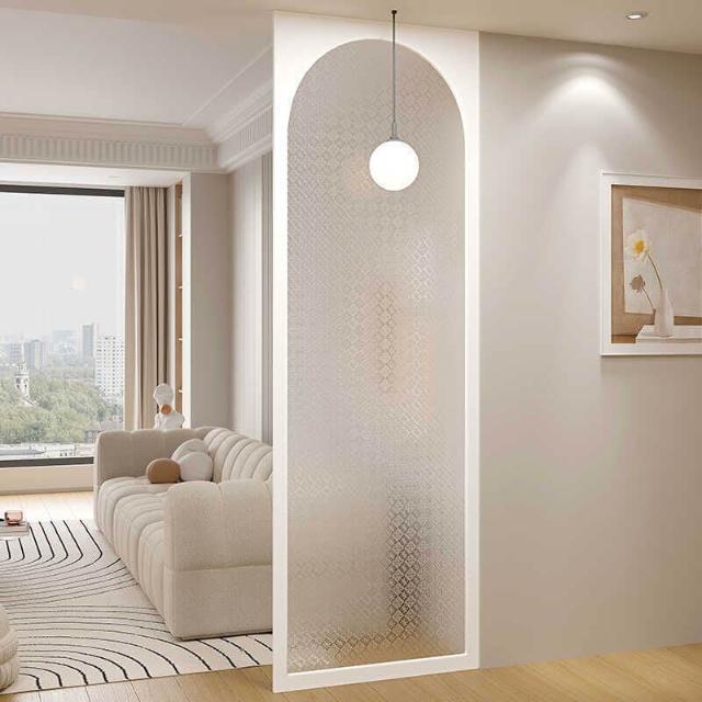法式奶油風水波紋隔斷實木屏風入戶客廳衛生間半墻長虹玻璃玄關