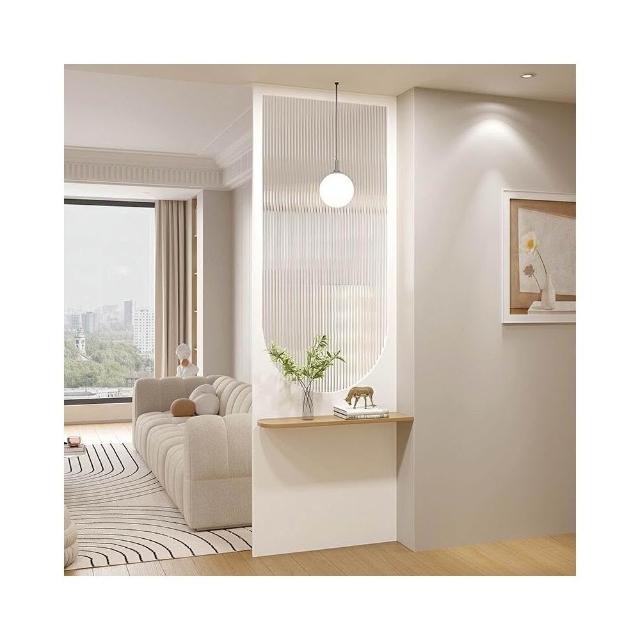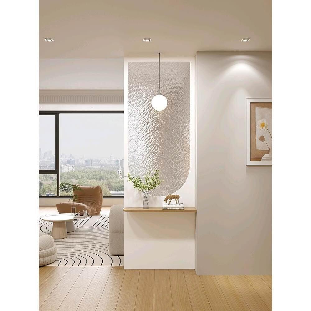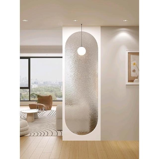 法式奶油風水波紋隔斷實木屏風入戶客廳衛生間半墻長虹玻璃玄關