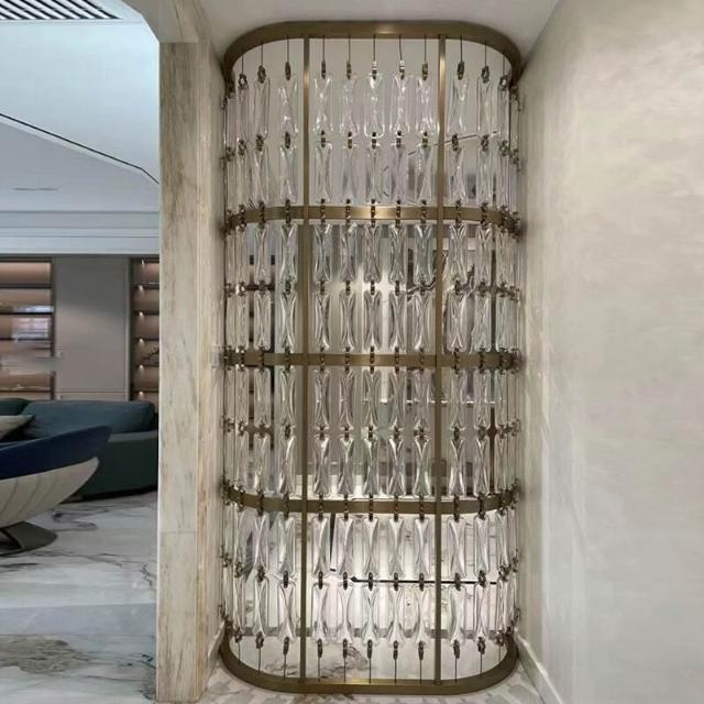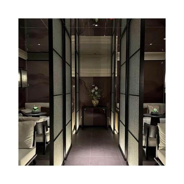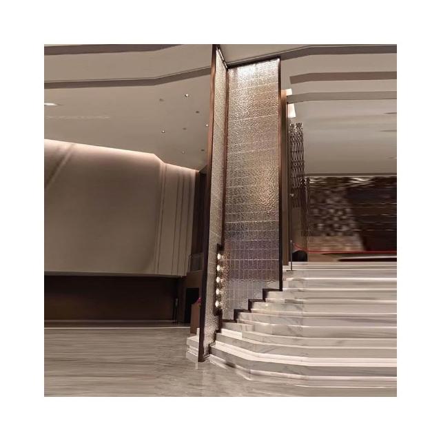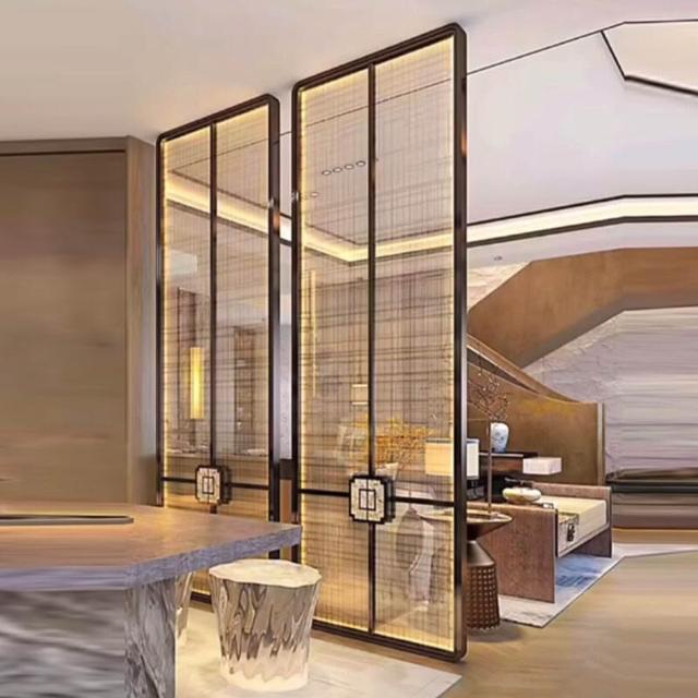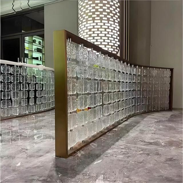 工廠定製不銹鋼夾絲玻璃屏風售樓部酒店大堂高端水晶屏風玻璃隔斷