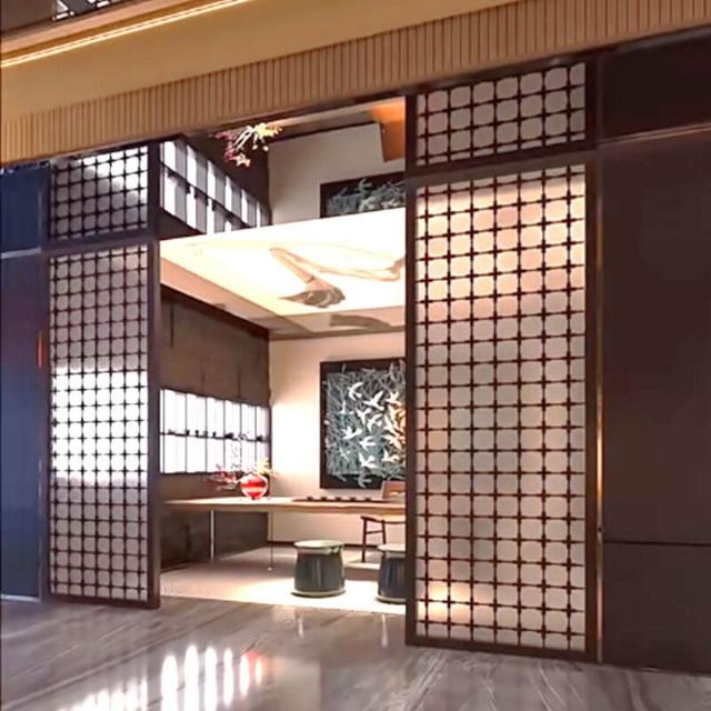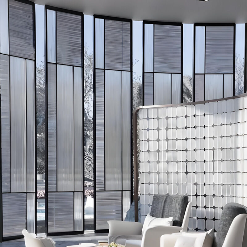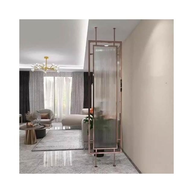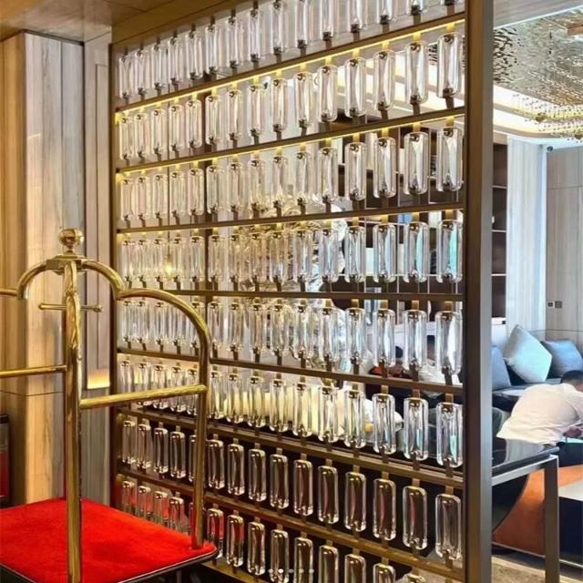 工廠定製不銹鋼夾絲玻璃屏風售樓部酒店大堂高端水晶屏風玻璃隔斷