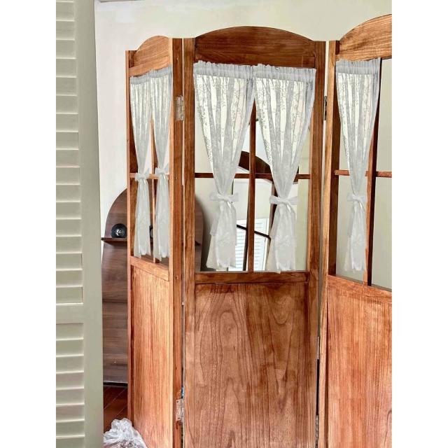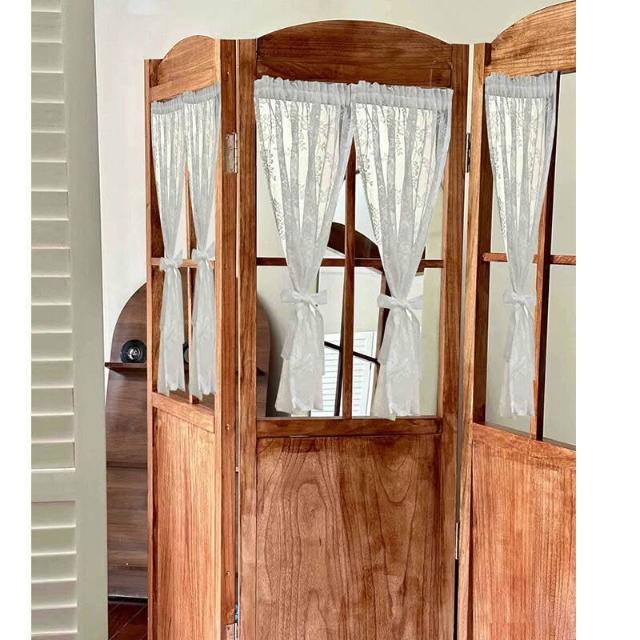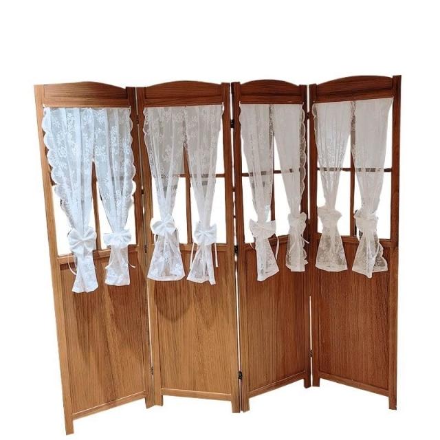 法式鄉村復古折疊屏風紗簾ins風實木移動隔斷服裝店民宿美甲店