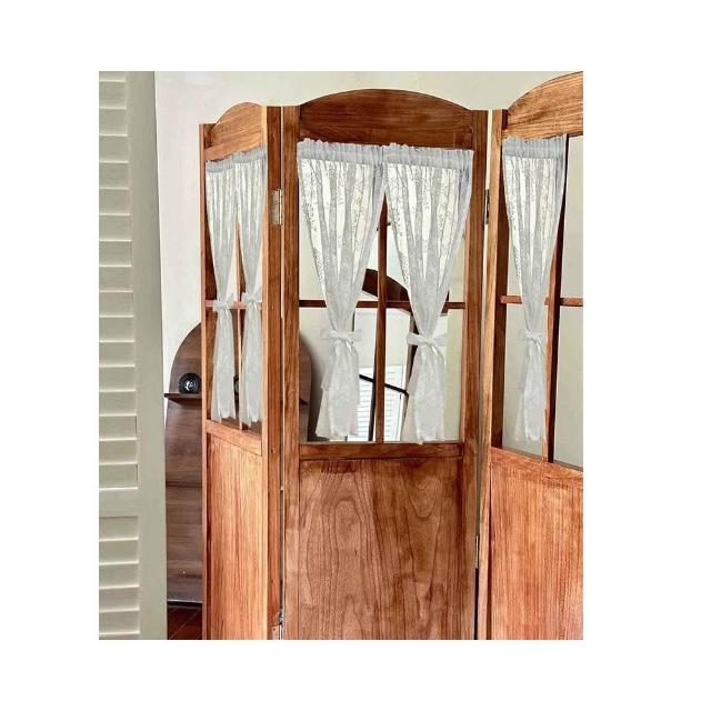 法式鄉村復古折疊屏風紗簾ins風實木移動隔斷服裝店民宿美甲店