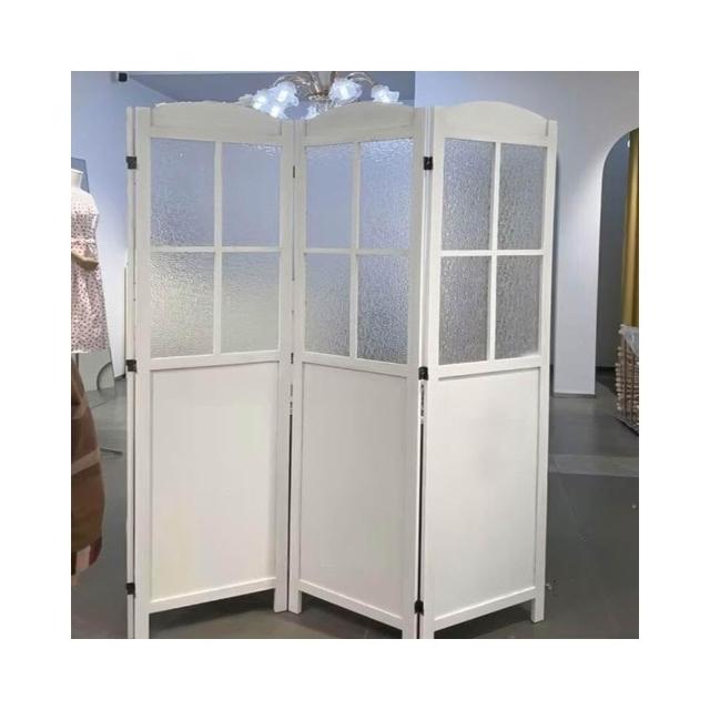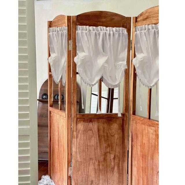 法式鄉村復古折疊屏風紗簾ins風實木移動隔斷服裝店民宿美甲店