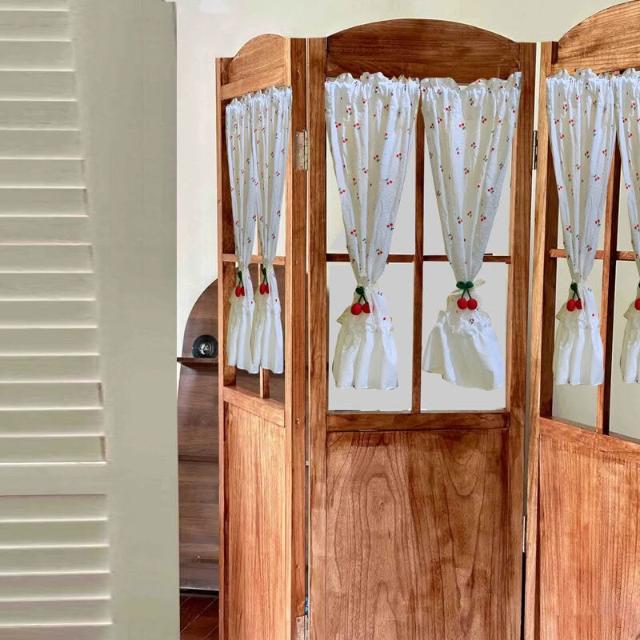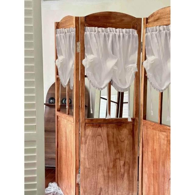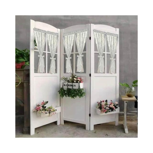 法式鄉村復古折疊屏風紗簾ins風實木移動隔斷服裝店民宿美甲店