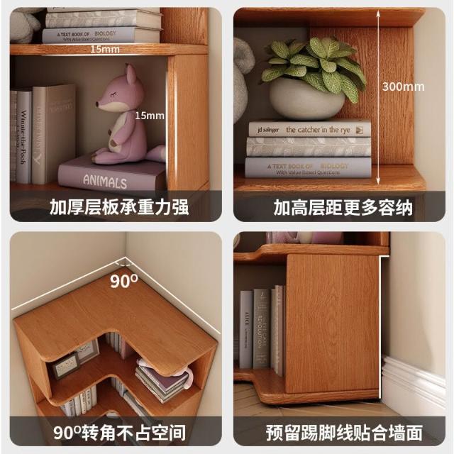 全實木轉角書櫃書架置物架落地拐角櫃客廳角櫃墻角飄窗儲物櫃