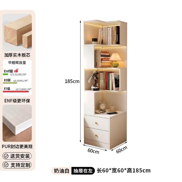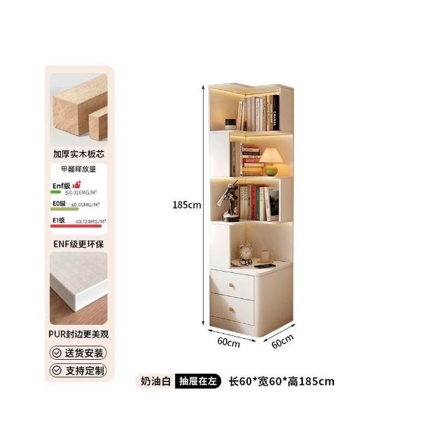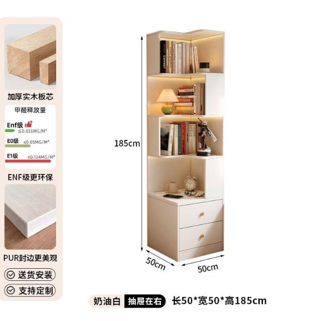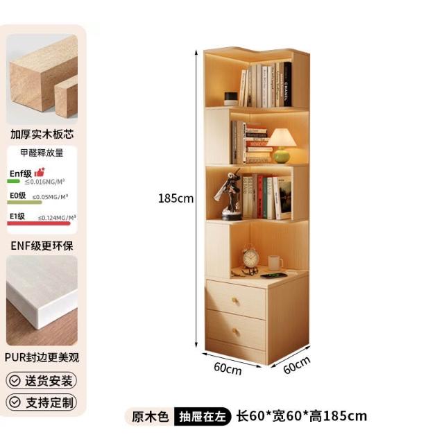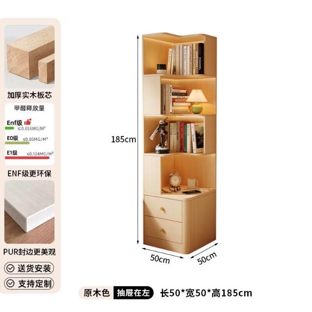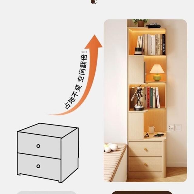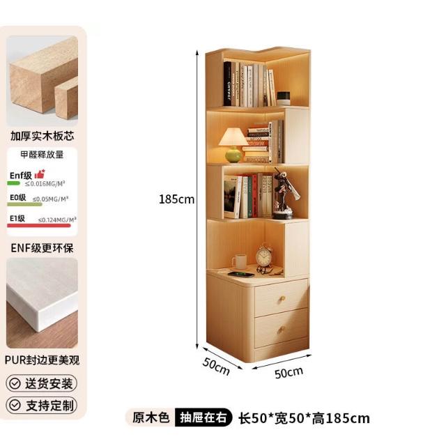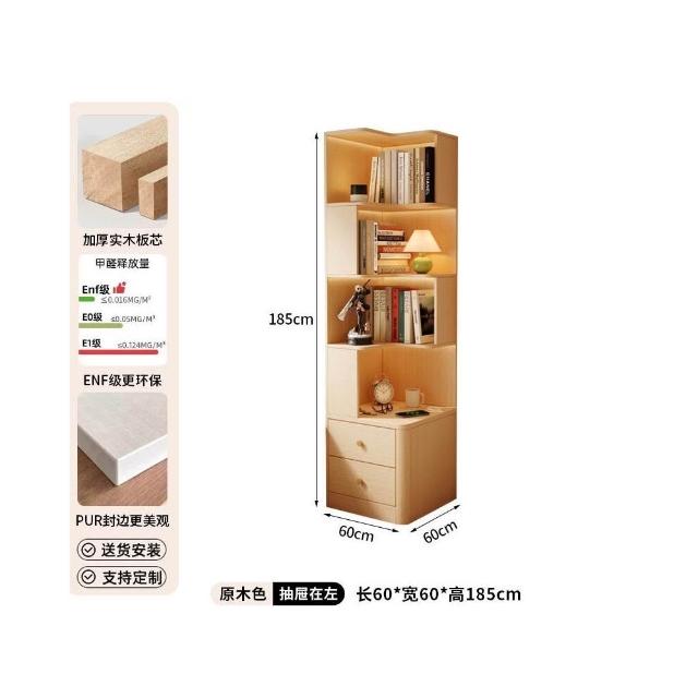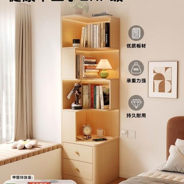 轉角書櫃實木角櫃臥室原木風床頭櫃一體置物架角落收納櫃儲物櫃子