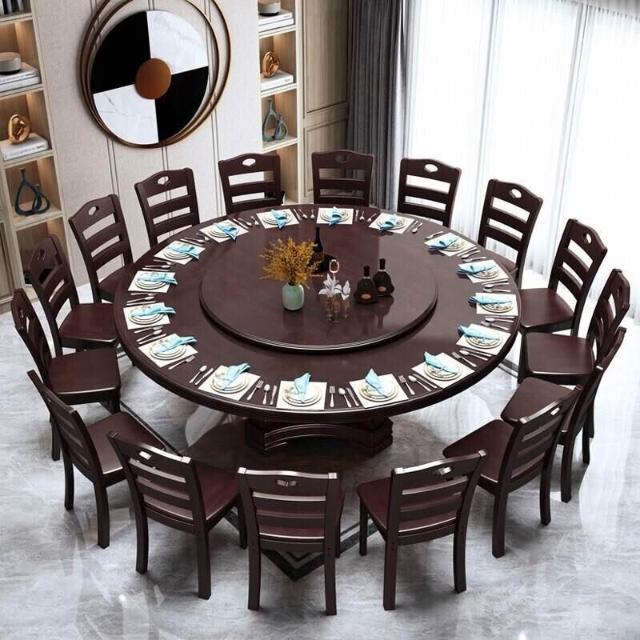 實木餐桌椅中式圓桌帶轉盤組合飯店家用桌子圓臺餐廳現代簡約家具