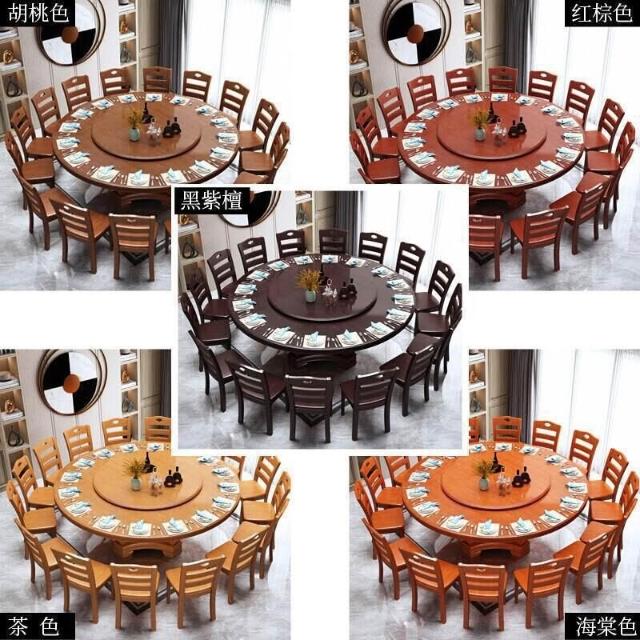 實木餐桌椅中式圓桌帶轉盤組合飯店家用桌子圓臺餐廳現代簡約家具