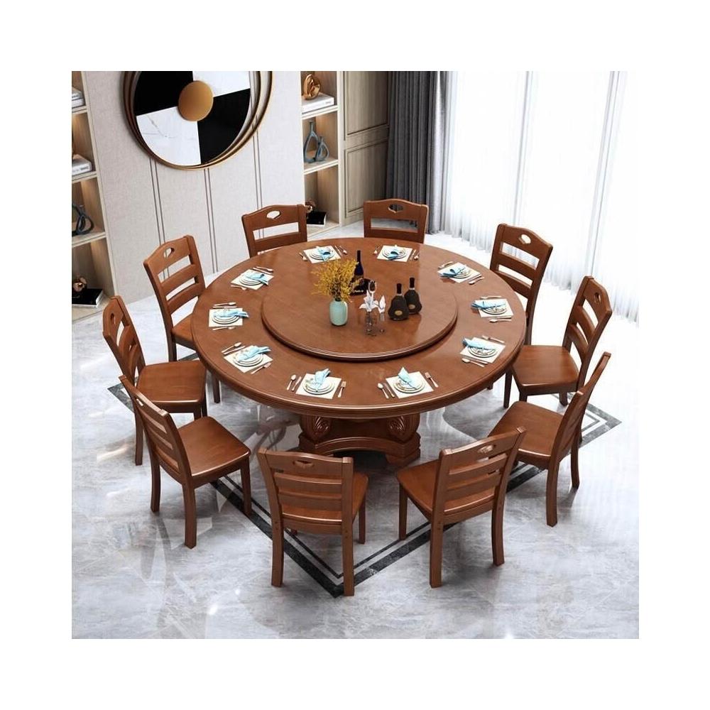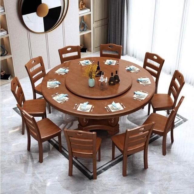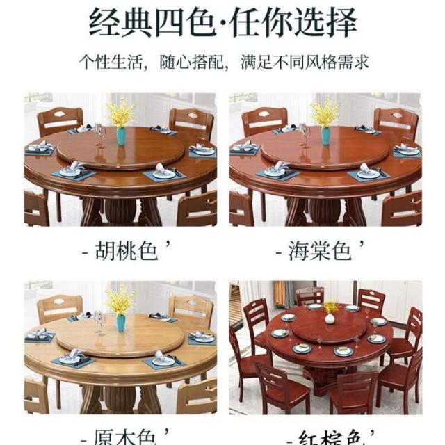 實木餐桌椅中式圓桌帶轉盤組合飯店家用桌子圓臺餐廳現代簡約家具
