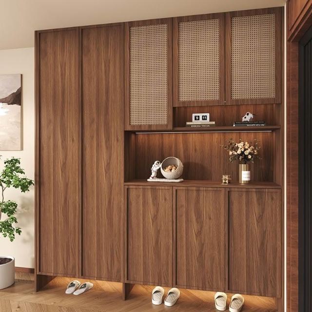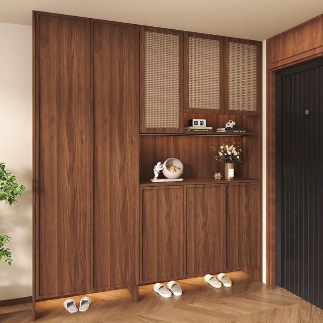實木鞋櫃中古風入戶進門家用一體靠墻復古玄關隔斷櫃儲物櫃子