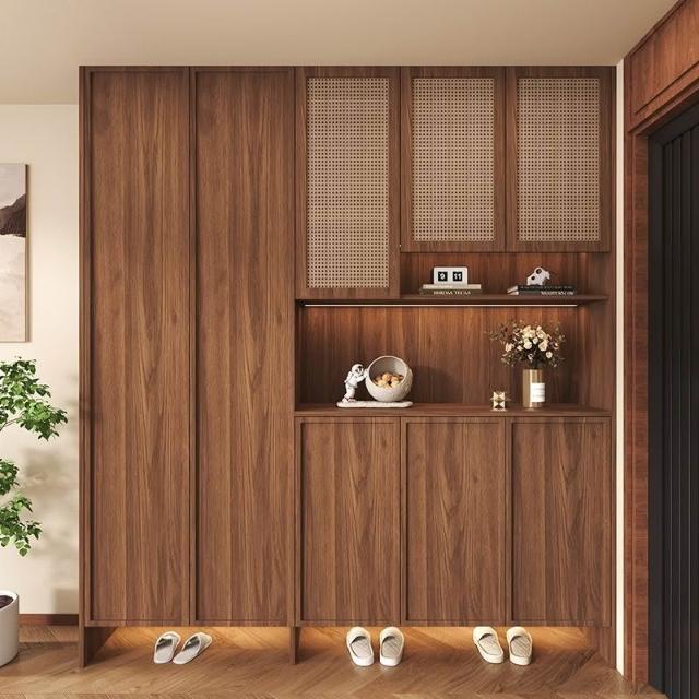 實木鞋櫃中古風入戶進門家用一體靠墻復古玄關隔斷櫃儲物櫃子