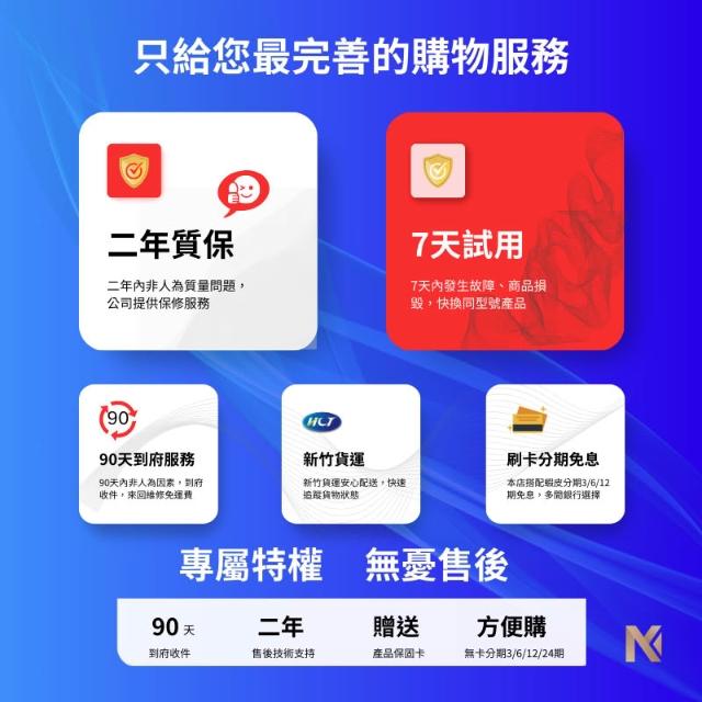 - 商品到貨享十天猶豫期之權益(注意!猶豫期非試用期),依法辦理退貨商品必須是全新狀態且包裝完整(包含主機、附件、內外包裝、隨機文件、贈品等)。如商品一經拆封或使用致商品價值受損(例僅得以福利品出售),商店將向消費者就商品一部或全部價值減損收取適當之費用(回復原狀、整新費),否則將影響退貨的權限。請先確認商品正確、外觀可接受,再行開機/使用,以免影響您的權利,祝您購物順心。